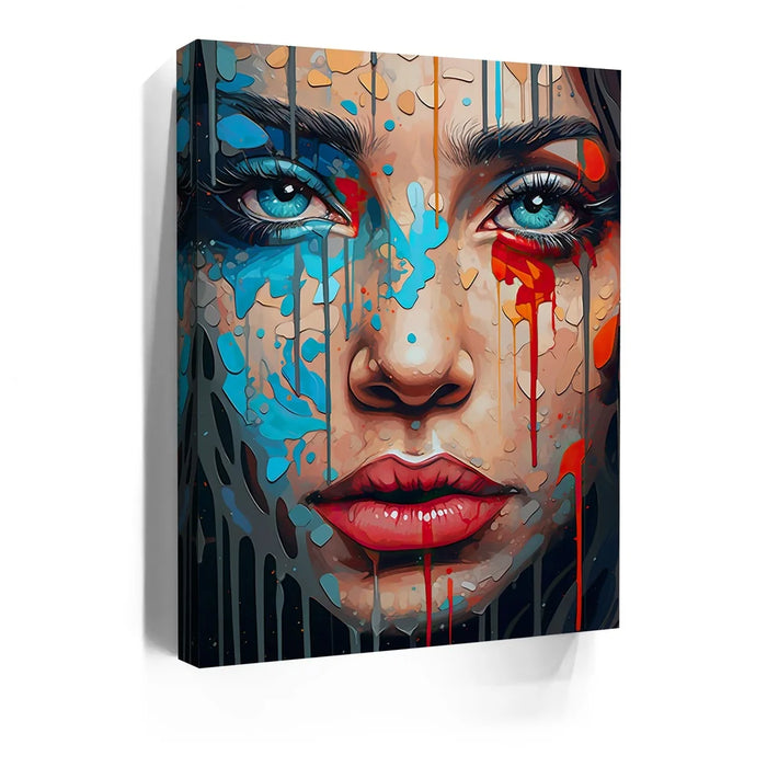 I Am Woman is a stunning fusion of strength, vulnerability, and color. Layers of dripping paint in fiery reds and cool blues cascade across the face of a woman whose piercing eyes tell a story of resilience and power. Every brushstroke feels alive — a balance of chaos and grace that mirrors the complexity of womanhood itself. This captivating piece stands as a declaration of identity, courage, and unapologetic beauty.