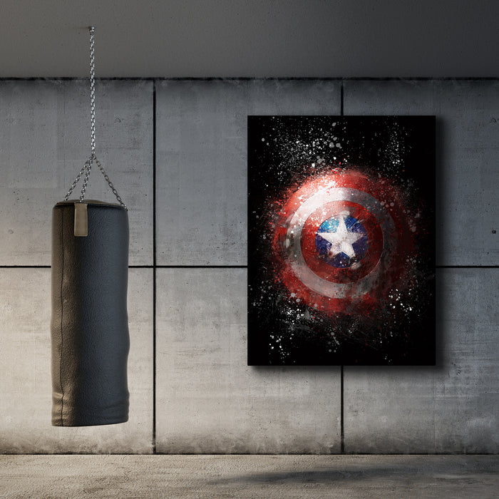 Unleash the indomitable spirit of Captain America with our captivating artwork inspired by his iconic shield.