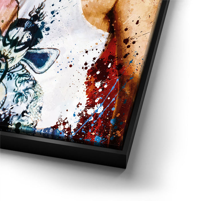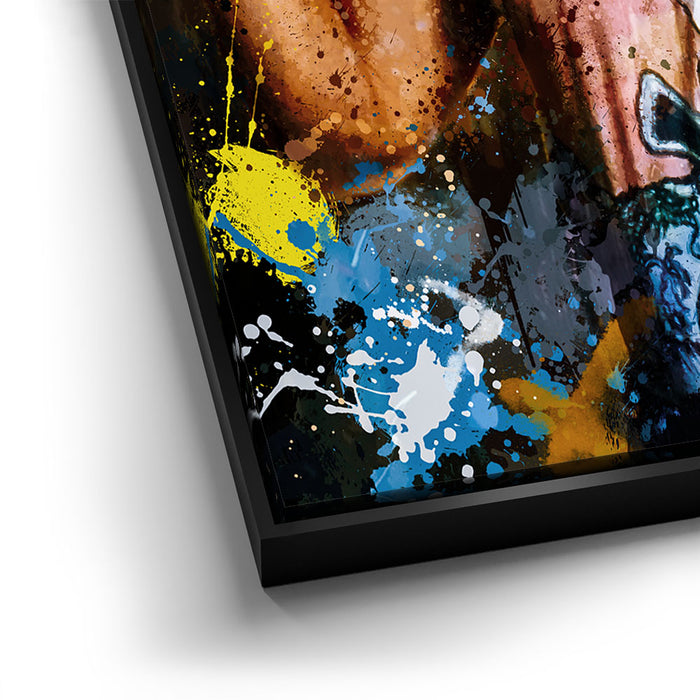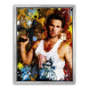 “I Feel Kind of Invincible” is a bold, explosive tribute to 1980s action cinema and pop culture attitude. Bursting with street-art energy and a dynamic splatter-paint style, this piece captures the iconic bravado of a sleeveless hero wielding confidence and firepower in equal measure. The chaotic color palette enhances the retro-cool vibes, making it a standout for fans of cult classics and vintage action flicks.