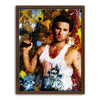 Perfect for man caves, home theaters, or collectors of nostalgic wall art, this canvas blends action movie grit with artistic flair for a truly invincible statement piece.