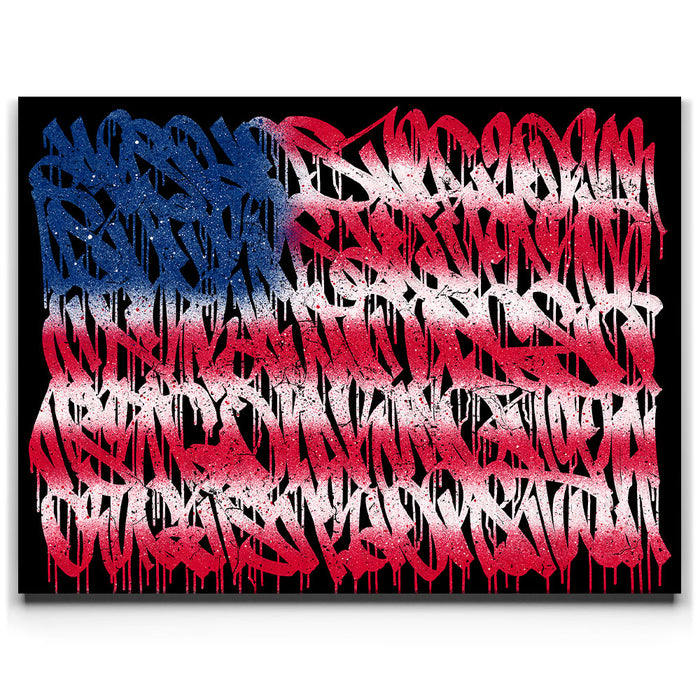 Perfect for lovers of American art, graffiti, and calligraphy, this piece blends modern typographic expression with national pride. Ideal for showcasing themes of freedom, the United States, and the American flag in home, office, or public spaces.