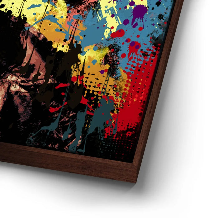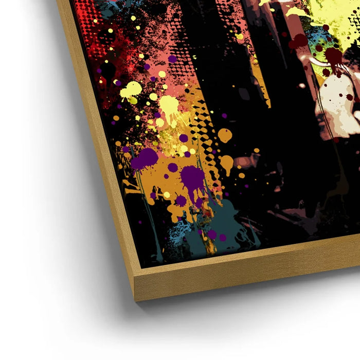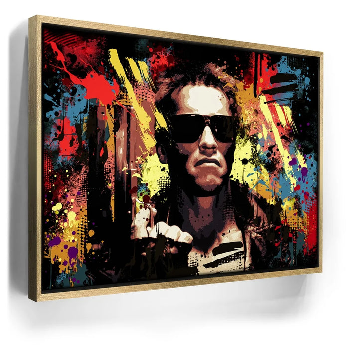 I’ll Be Back – Colorful wall art explodes with attitude, style, and cinematic power. Featuring a bold pop-art design with electrifying splashes of red, yellow, and blue, this piece captures the essence of unstoppable confidence and rebellion. The gritty texture and vibrant graffiti-inspired backdrop make it a perfect fusion of street art and movie nostalgia.