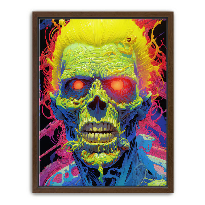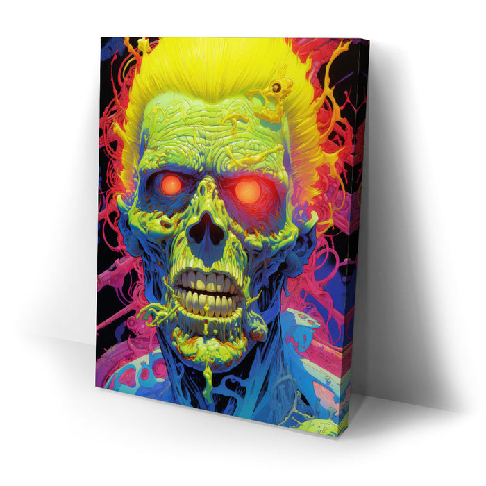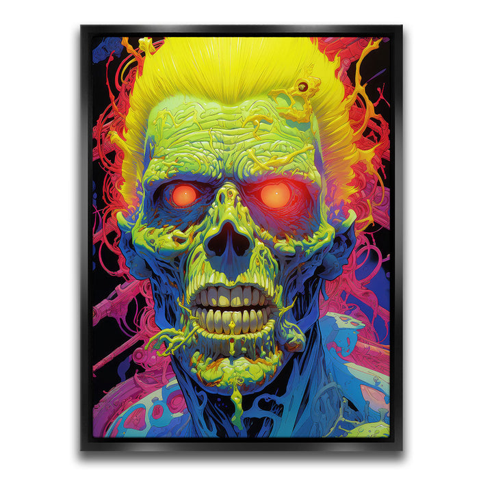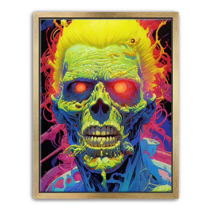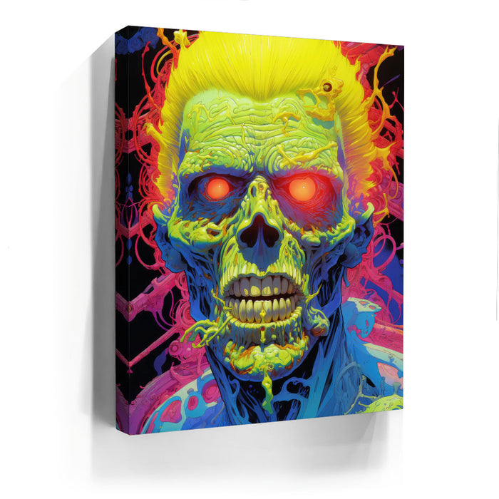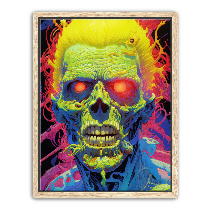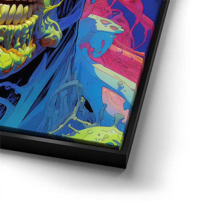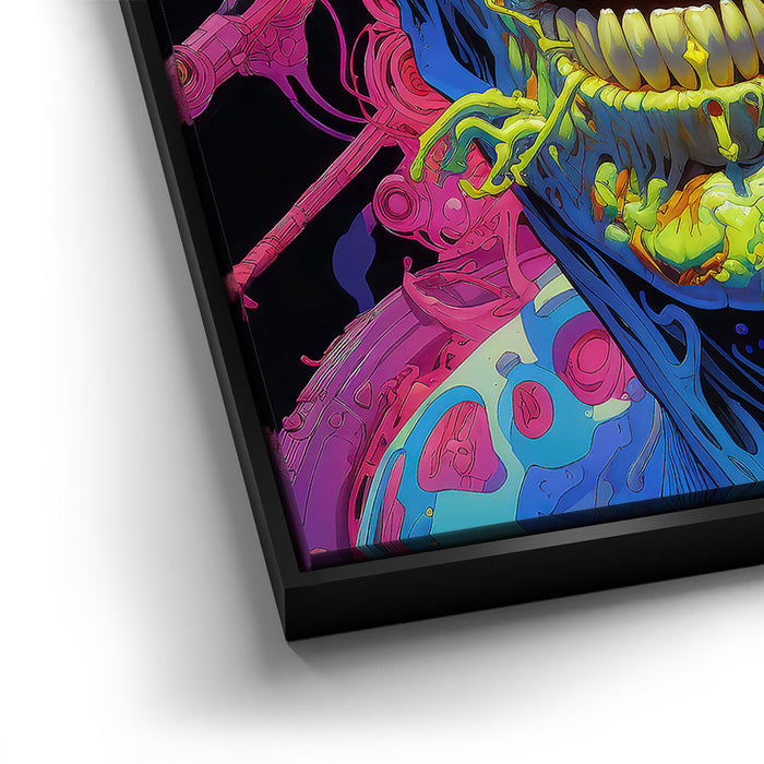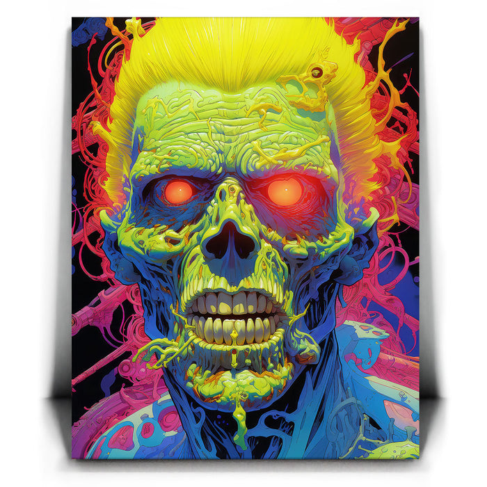 This piece is ideal for fans of horror, sci-fi, and surrealism, combining bold colors and disturbing imagery to create a visually arresting portrait that grabs attention immediately.