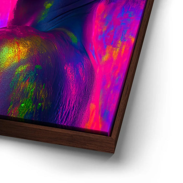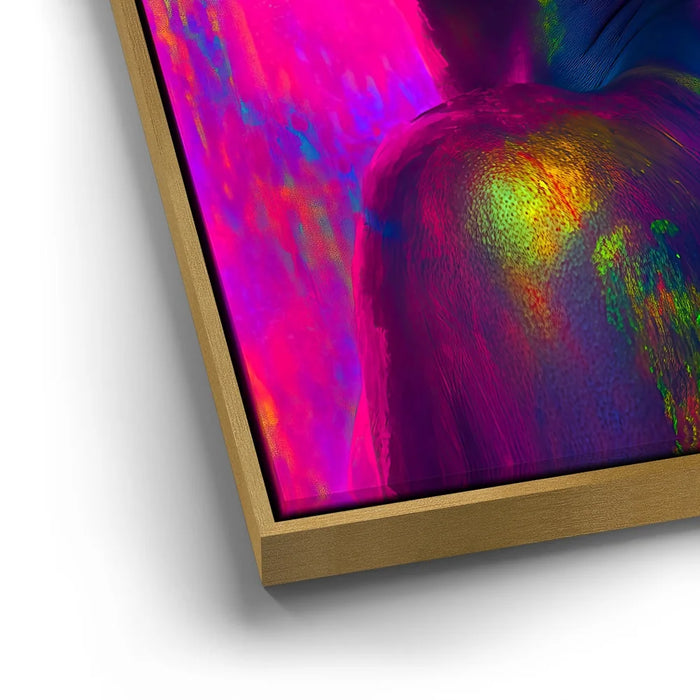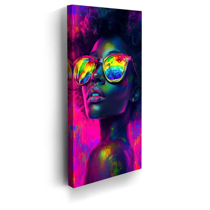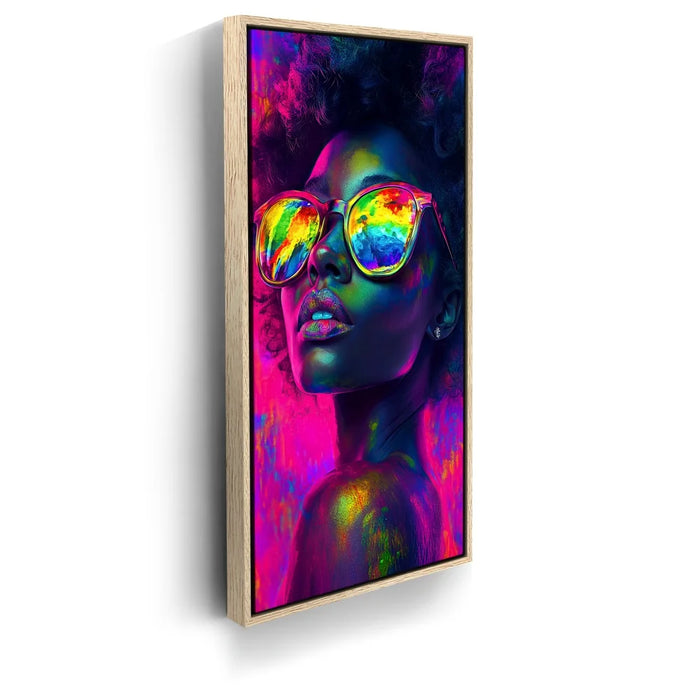 “Interstellar Glow” by Kandise King is a cosmic burst of color and confidence. The subject’s radiant skin reflects neon pinks, purples, and electric blues, while mirrored sunglasses capture entire galaxies of light and imagination. Every hue vibrates like a pulse — an ode to self-expression that feels both futuristic and deeply soulful.