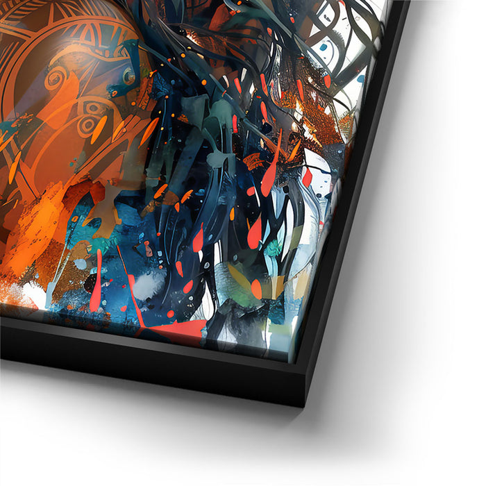 "It Calls Me" is a vibrant and dynamic artwork that portrays a strong and beautiful woman with intricate tattoos and flowing curly hair. The piece is rich with color and detail, capturing the essence of strength, determination, and cultural pride.