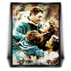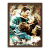 This heartwarming artwork captures an iconic moment from the classic film "It's A Wonderful Life," featuring James Stewart as George Bailey surrounded by his loving family. The vivid, artistic rendering of this cherished scene evokes the warmth and enduring spirit of this timeless movie.