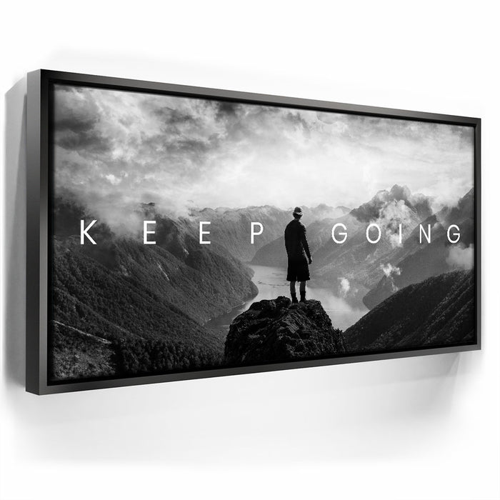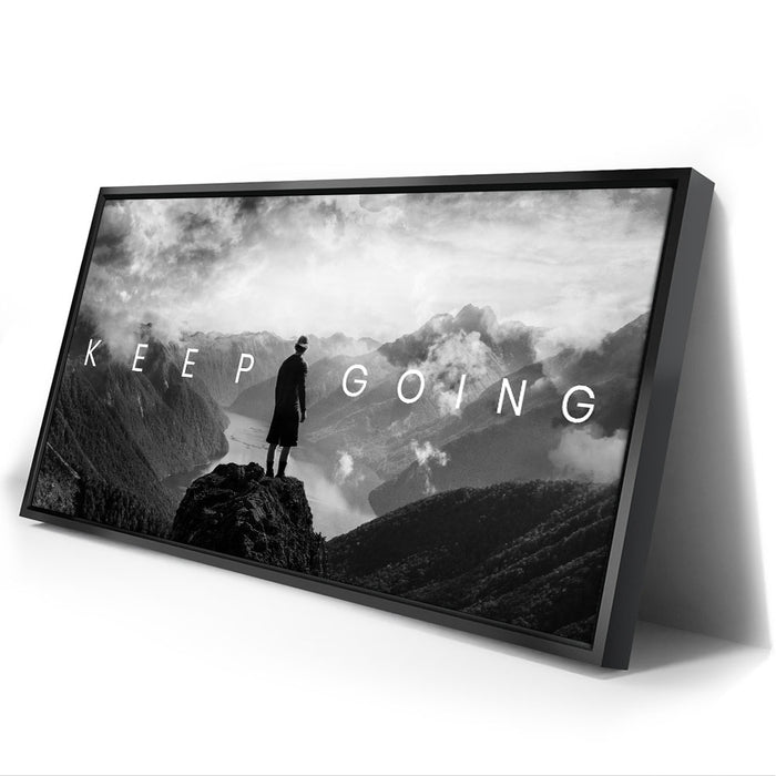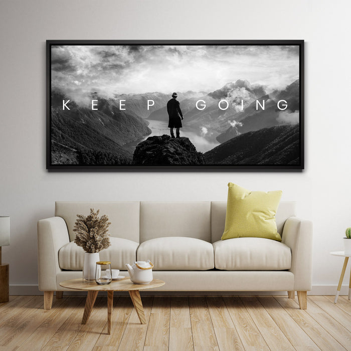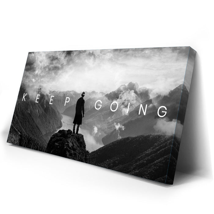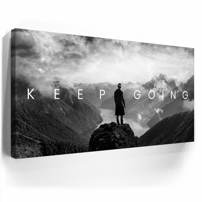 "Keep Going - Mountains" is a powerful artwork that encapsulates the essence of perseverance and the unwavering determination to keep going, no matter the odds.