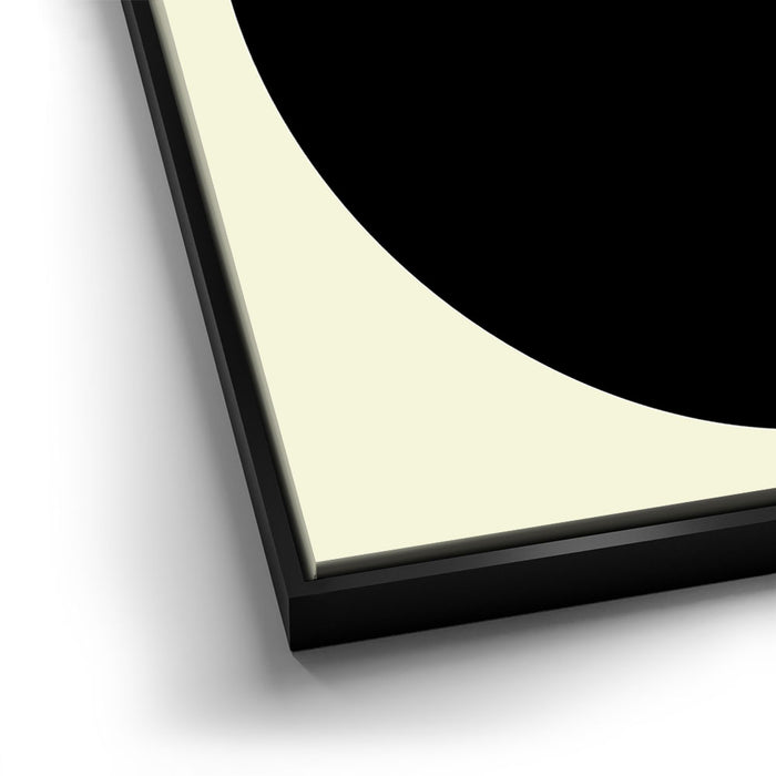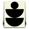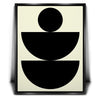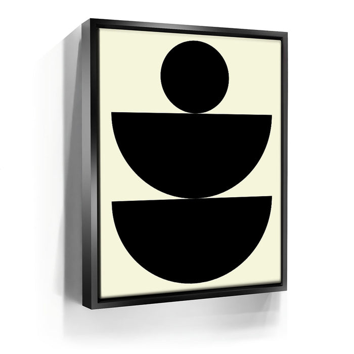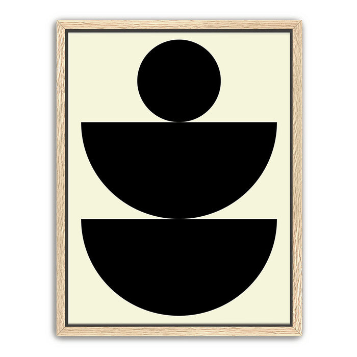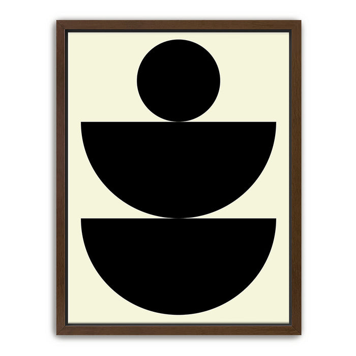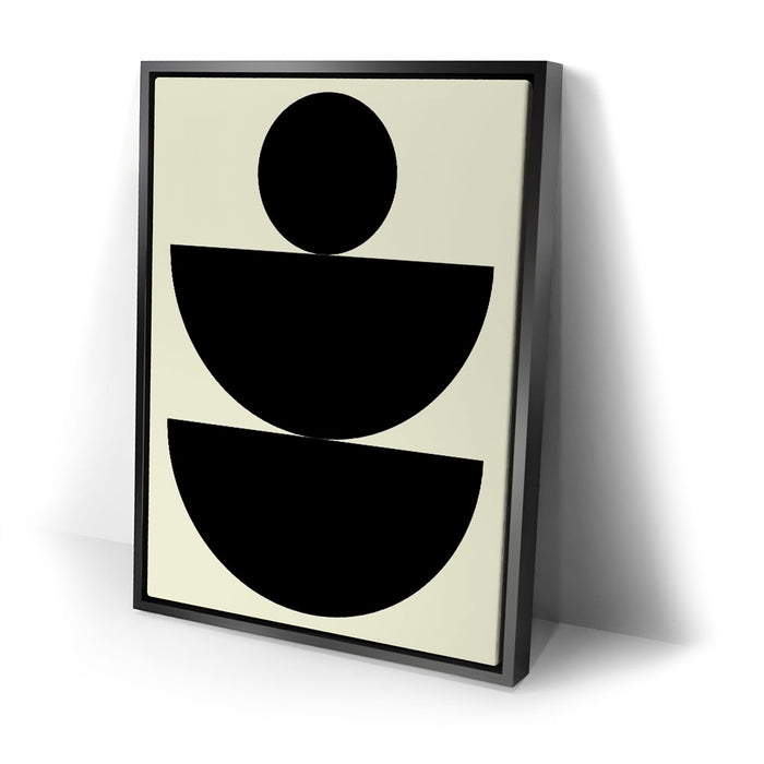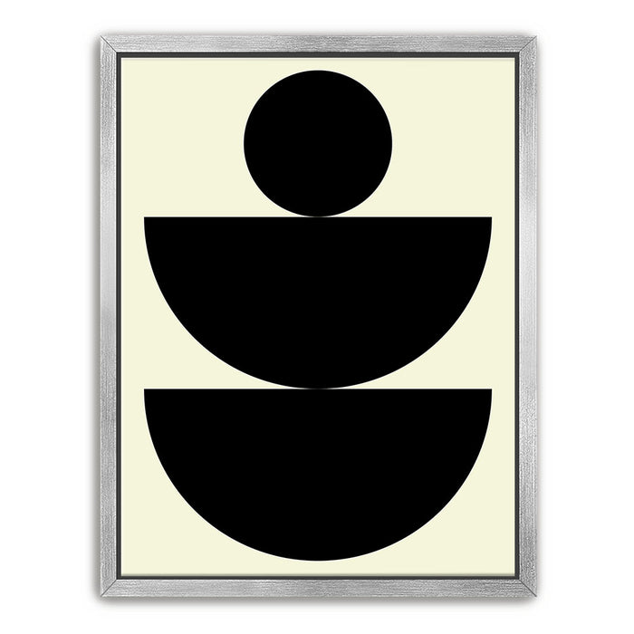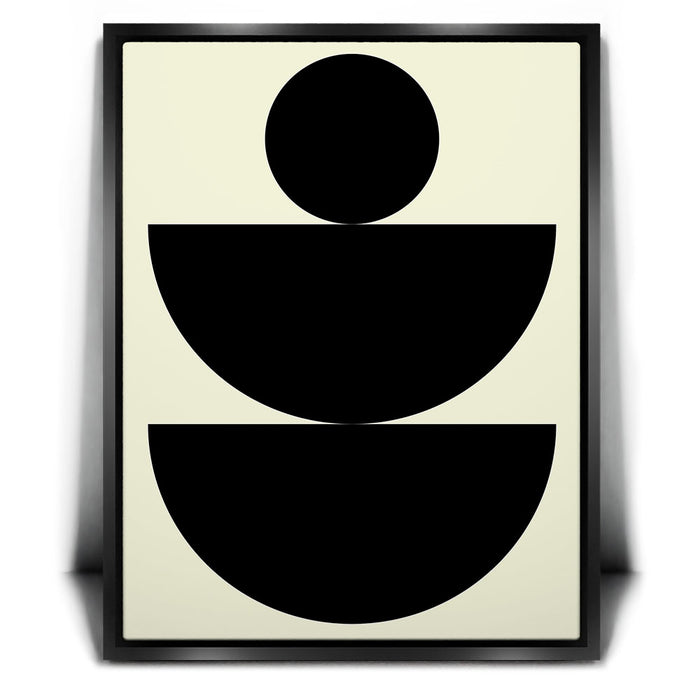 "LA Solace II" by George Rosaly is a striking minimalist artwork featuring stacked geometrical shapes, including circles, half circles, and bold lines. Rendered in black and white, this piece reflects Rosaly’s signature minimalism style, emphasizing balance, form, and simplicity.