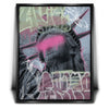 The background is layered with urban graffiti, blending the themes of freedom and street art into a visually captivating composition. This artwork is perfect for those who appreciate the fusion of classical symbols with modern, edgy graffiti style, creating a thought-provoking and visually arresting piece.