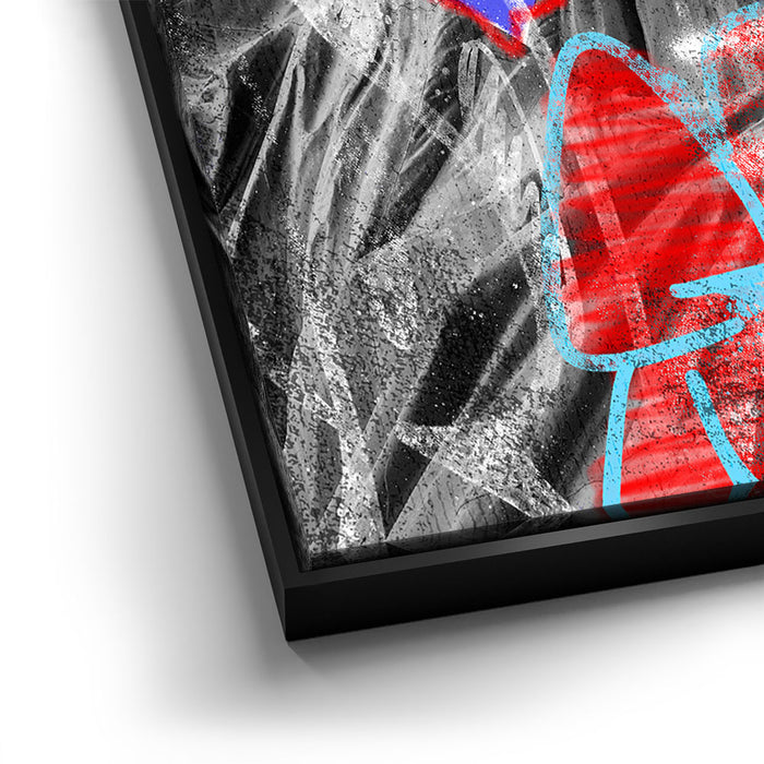 The background is layered with urban graffiti, blending the themes of freedom and street art into a visually captivating composition. This artwork is perfect for those who appreciate the fusion of classical symbols with modern, edgy graffiti style, creating a thought-provoking and visually arresting piece.
