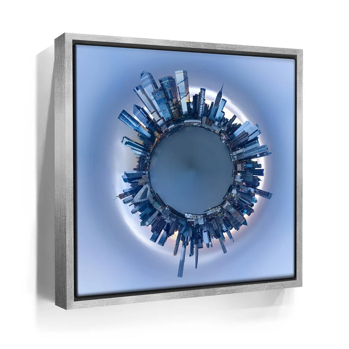 Little Cold Grey Planet Manhattan captures New York City in a sleek, futuristic vision where architecture meets abstraction. The muted blue-grey tones and circular skyline create a striking “tiny planet” illusion — a minimalist yet powerful take on Manhattan’s timeless silhouette. The composition blends modern urban design with artistic coolness, evoking sophistication, isolation, and wonder all at once. A bold statement piece that celebrates the geometry and resilience of the city in a new dimension.