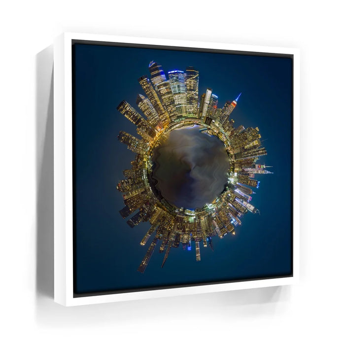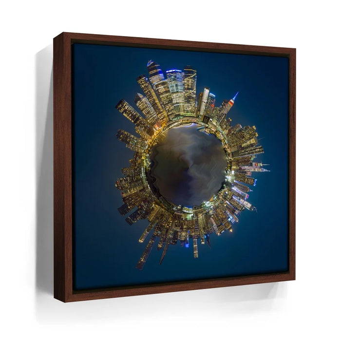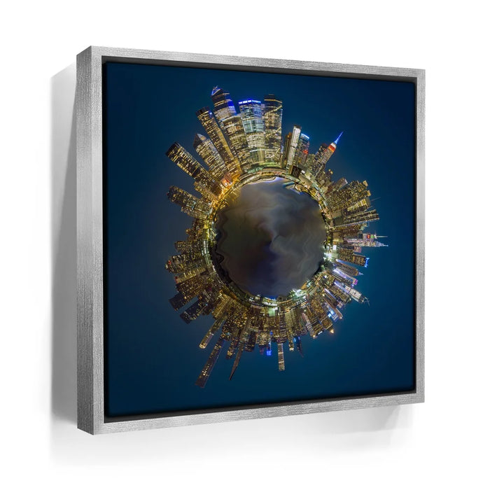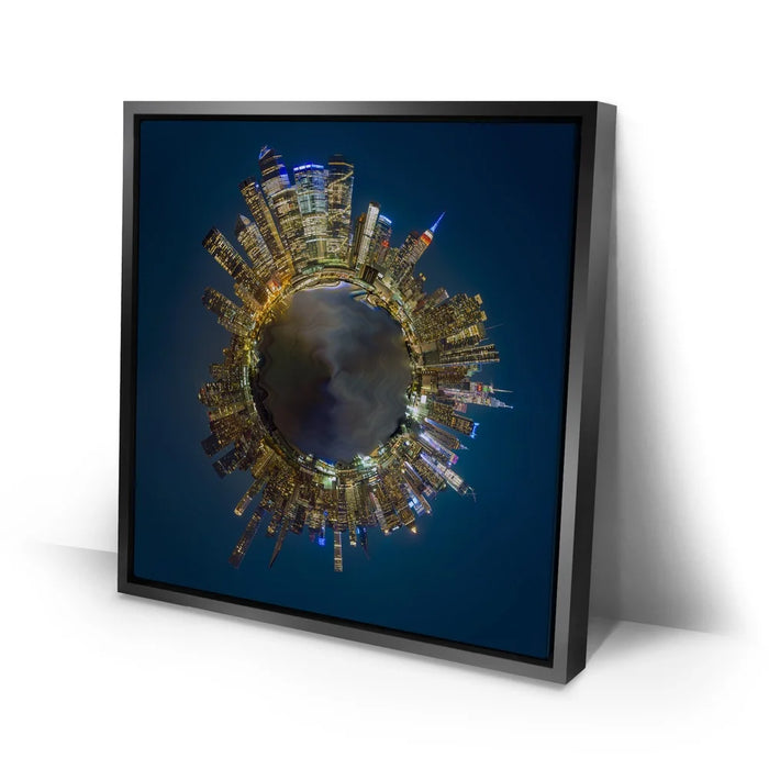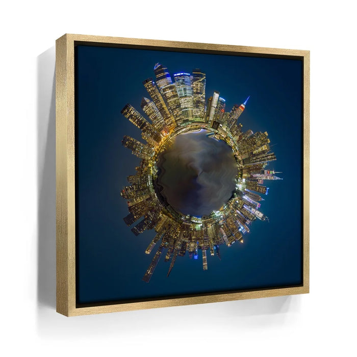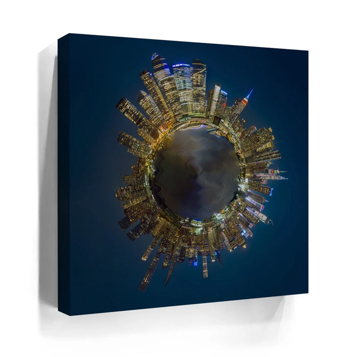 Little Planet Manhattan at Night Feat. Empire State Building transforms the brilliance of New York’s skyline into a hypnotic circular world of light and motion. The Empire State Building stands proudly among shimmering skyscrapers, surrounded by reflections that evoke energy and ambition. This “tiny planet” perspective captures the pulse of Manhattan after dark — vibrant, electric, and endlessly alive. A bold statement piece celebrating the power and beauty of the city that never sleeps.