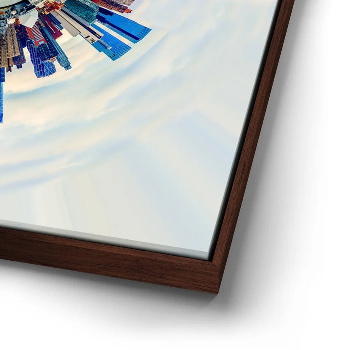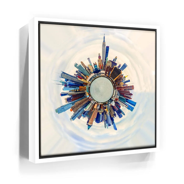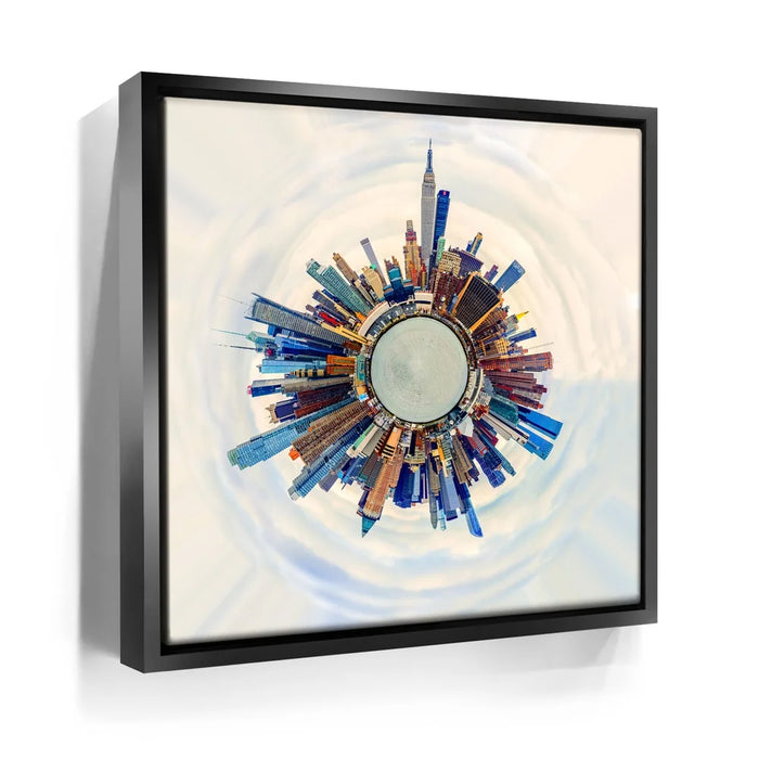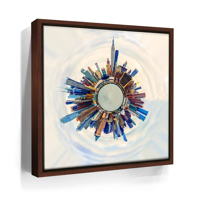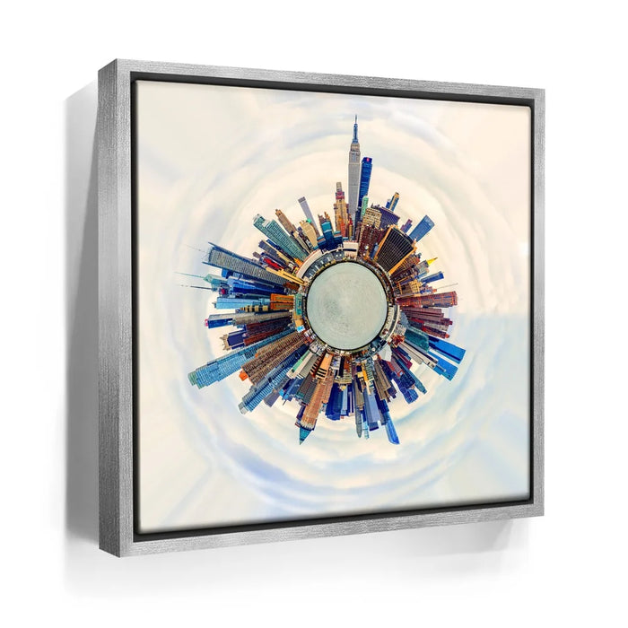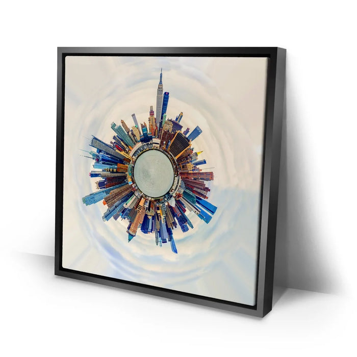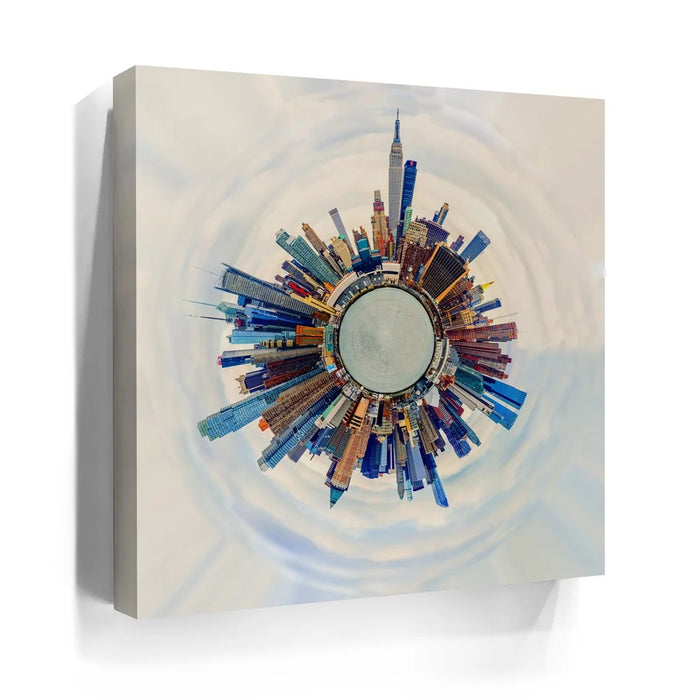 Little Planet Manhattan Feat. Midtown Skyline Skyscrapers transforms the iconic New York City skyline into a mesmerizing miniature world. This panoramic “tiny planet” composition captures Midtown’s soaring skyscrapers — including the Empire State Building — encircling a surreal urban core. With bold colors and stunning symmetry, it symbolizes the energy, ambition, and architectural wonder that define Manhattan. A modern statement piece for anyone inspired by city life, design, and innovation.