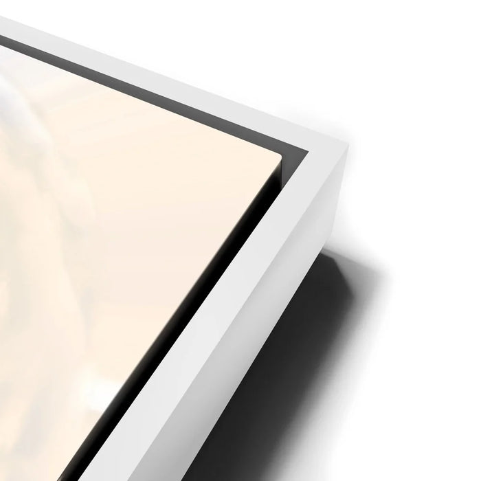 When you receive your order it will arrive pre-installed with industrial sawtooth coated metal hooks so it’s ready to hang right out of the box. Our handmade floating frames, available in various thickness options, add a touch of sophistication and come ready to hang right out of the box with a high quality wire hangar.