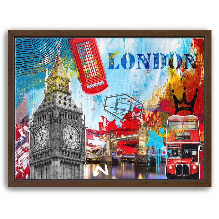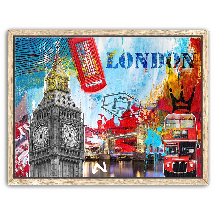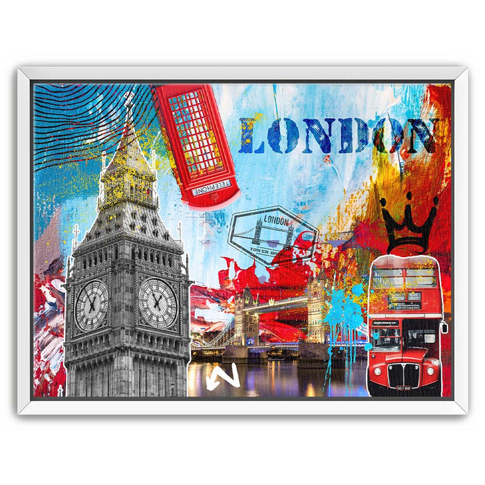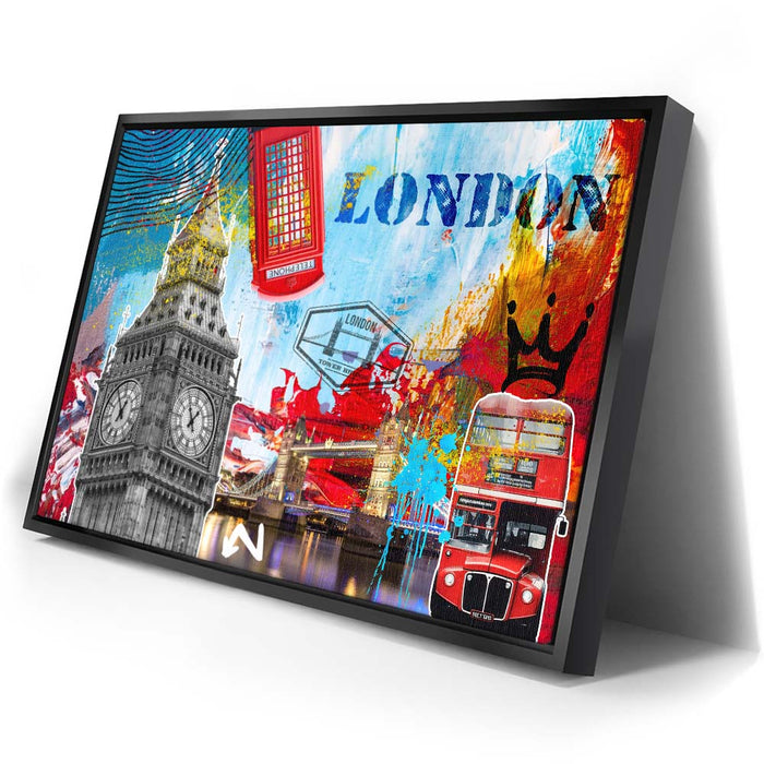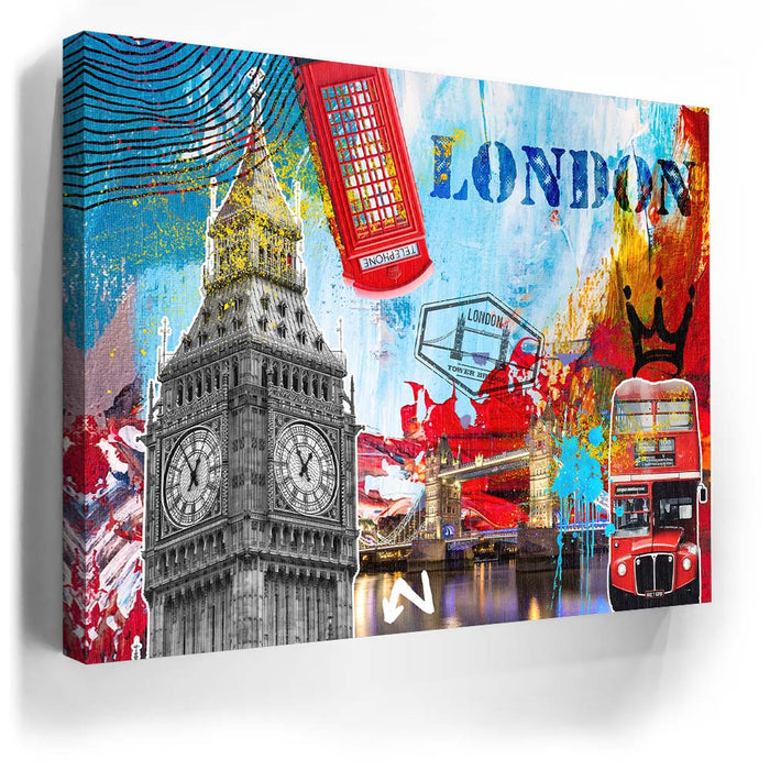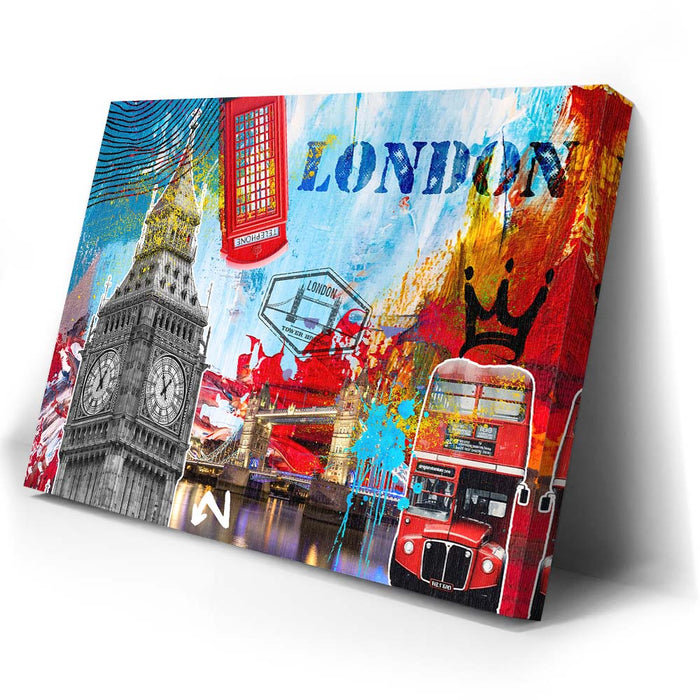 "London Collage" brings together the iconic sights of London, featuring landmarks like Big Ben, the Tower Bridge, and the quintessential red double-decker bus. With splashes of vibrant colors and the classic red telephone booth, this artwork captures the lively spirit and historical charm of the city. Perfect for anyone captivated by London’s unique blend of tradition and modernity, this piece celebrates the essence of Britain’s capital in a contemporary, artistic style.