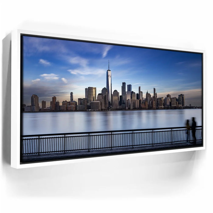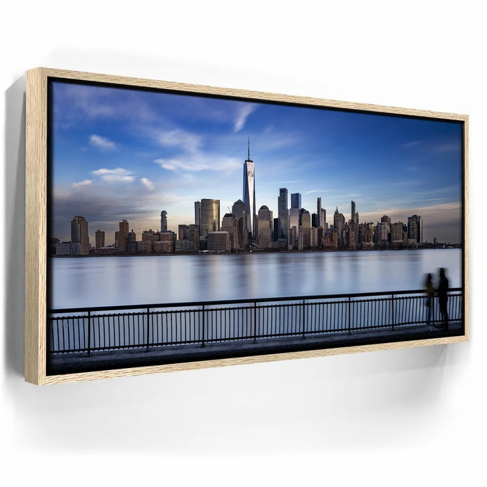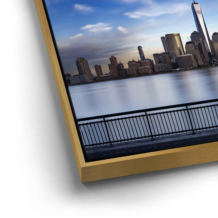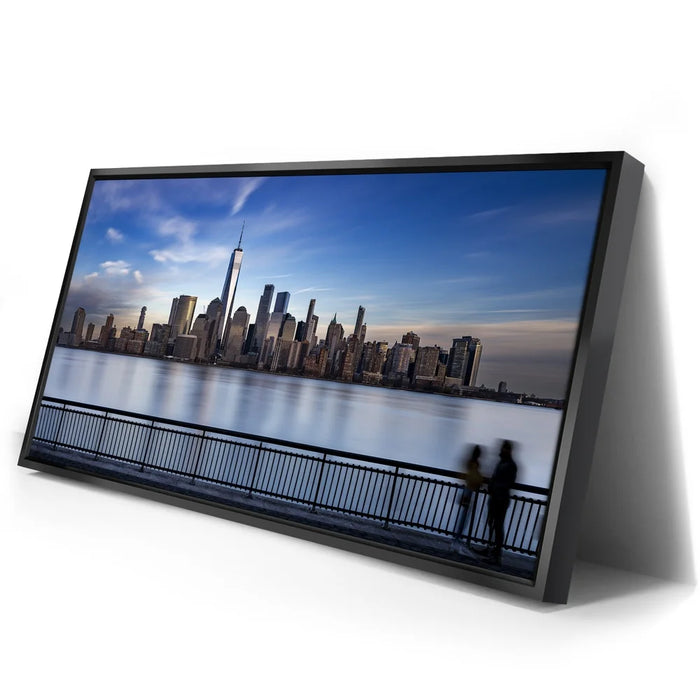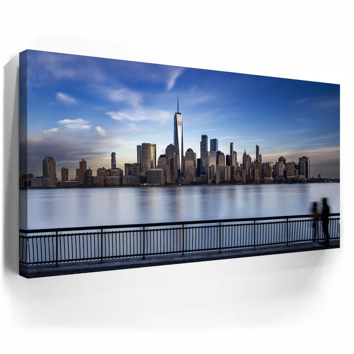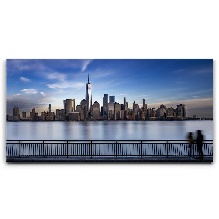 This panoramic cityscape highlights the grandeur of Manhattan as seen from Jersey City, making it a striking tribute to New York’s iconic skyline and architectural beauty.
