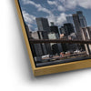 “Lower Manhattan Skyline Panoramic View With Brooklyn Bridge” by Barbarossa showcases New York City’s architectural icons in one breathtaking composition. The Brooklyn Bridge stretches across the East River, leading the eye to the towering presence of One World Trade Center and the surrounding skyscrapers under a dramatic sky.