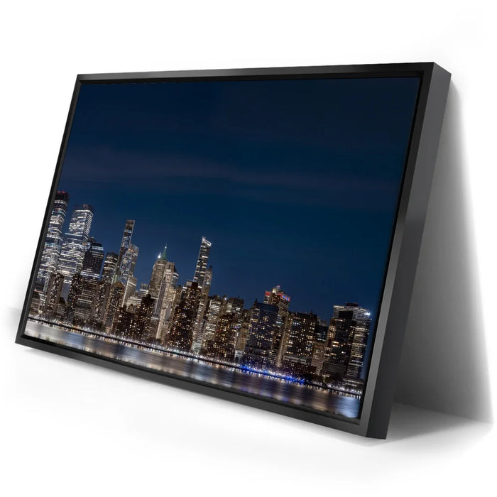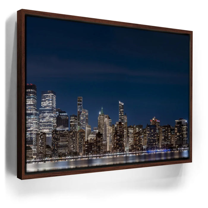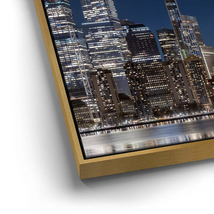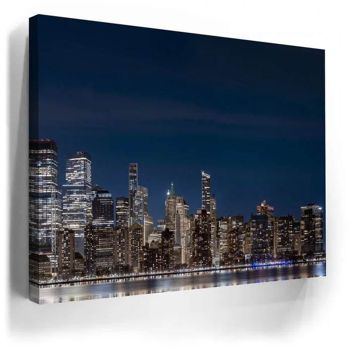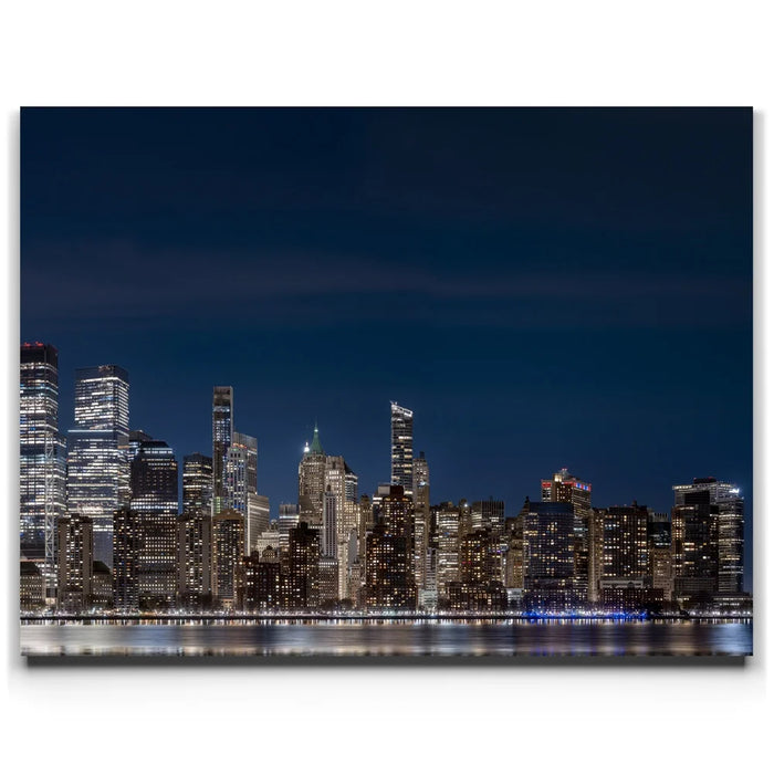 This panoramic night view captures the heartbeat of New York’s financial district and is perfect for bringing urban sophistication and energy into your home or office.