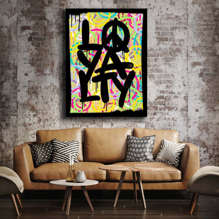 This graffiti-style artwork is ideal for offices, living rooms, or creative spaces where motivation and peace are key. "Loyalty I" combines modern typography with a street-art edge, making it a standout choice for fans of abstract and motivational art.