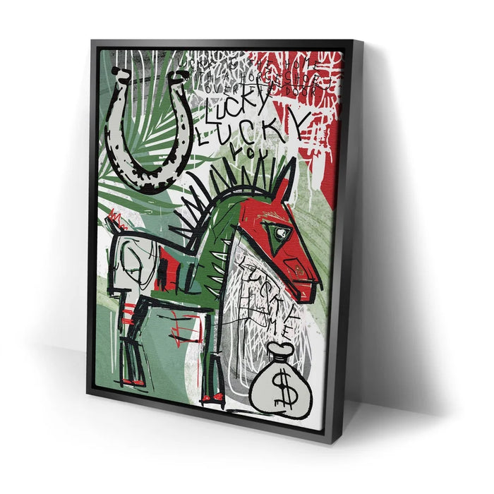 Perfect for those seeking an energetic and inspiring addition to their space, this piece highlights the themes of luck, gambling, and success. Its unique blend of abstract art and street art elements makes it a standout choice for modern interiors and Basquiat fans alike.