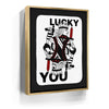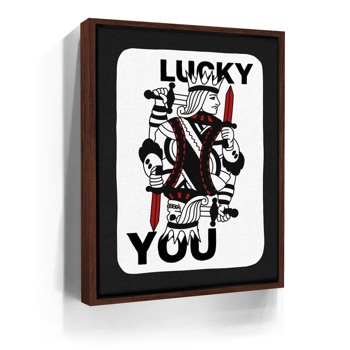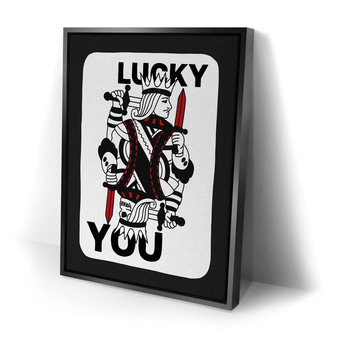 Lucky You Playing Card - Gritty brings a bold, street-inspired twist to a classic symbol of chance and confidence. Featuring a distressed, high-contrast design with red and black accents, this artwork fuses casino flair with urban grit. The stylized “King of Hearts” card and bold typography make it a standout statement piece for game rooms, bars, or modern interiors. Perfect for anyone who lives life on their own terms and knows luck favors the bold.