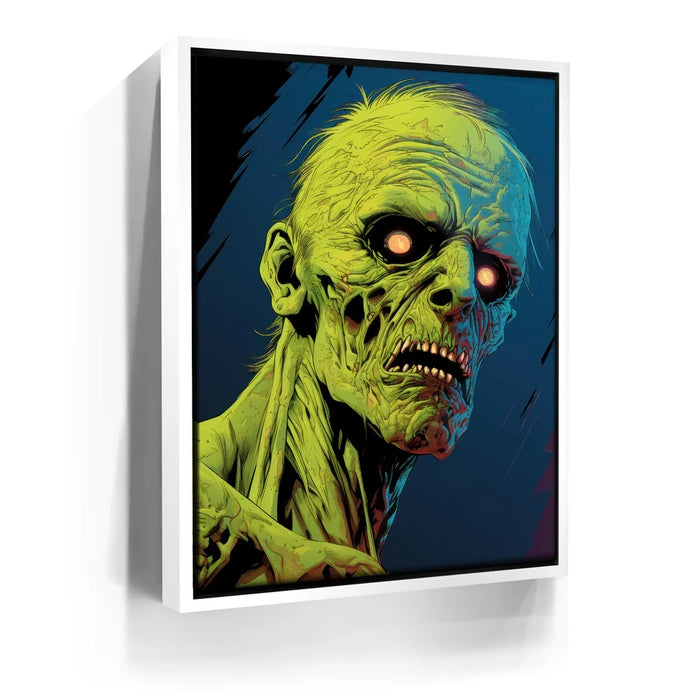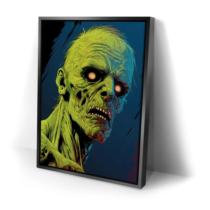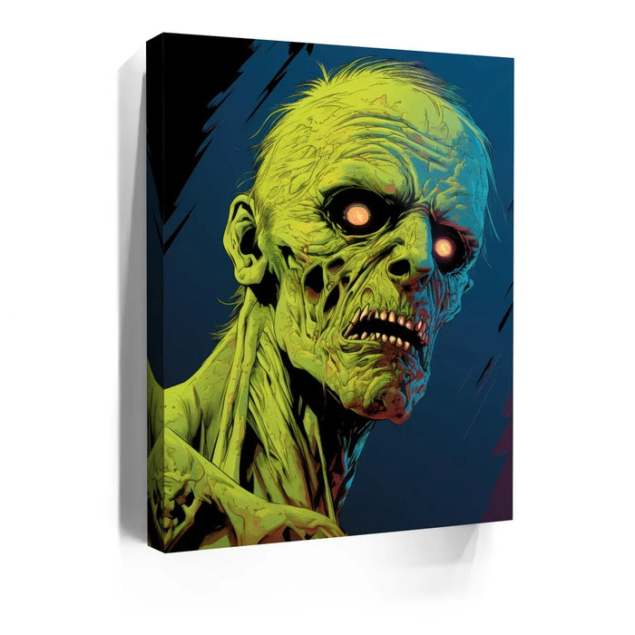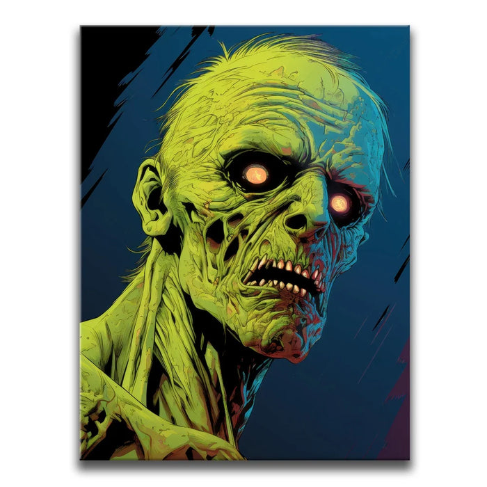 Ideal for fans of horror and the macabre, "Luminous Zombie Gaze" is an attention-grabbing piece that stands out with its grotesque yet compelling portrayal of the undead. Perfect for those seeking spine-chilling art for Halloween or horror-themed spaces.