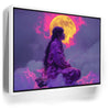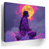 Elevate your living space with this mesmerizing canvas art that captures the ethereal beauty of a dreamlike scene. The artwork features a silhouetted figure in deep contemplation, bathed in vibrant purples and pinks, with a luminous full moon glowing brightly behind her.