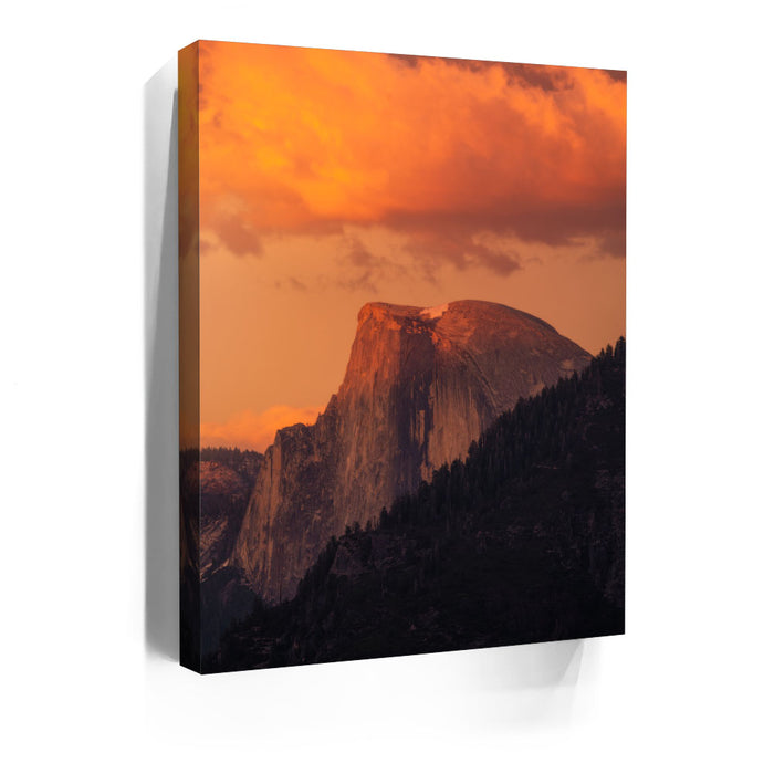 “Majestic Rise” by Daniel Heck captures the awe-inspiring beauty of Yosemite’s Half Dome illuminated by the fiery glow of sunset. The granite peak stands tall and powerful beneath dramatic orange clouds, symbolizing both the strength and timeless grandeur of California’s Sierra Nevada mountains.