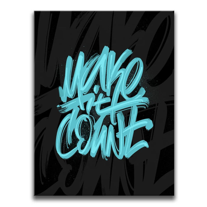 Make It Count - Blue - Calligraphy delivers a burst of energy and intention through bold graffiti-inspired lettering. The electric blue calligraphy pops against the deep black background, creating a modern and motivating piece that radiates confidence and drive. Perfect for creative studios, workspaces, or home offices, this artwork inspires action and focus while adding an urban, contemporary edge to your space.