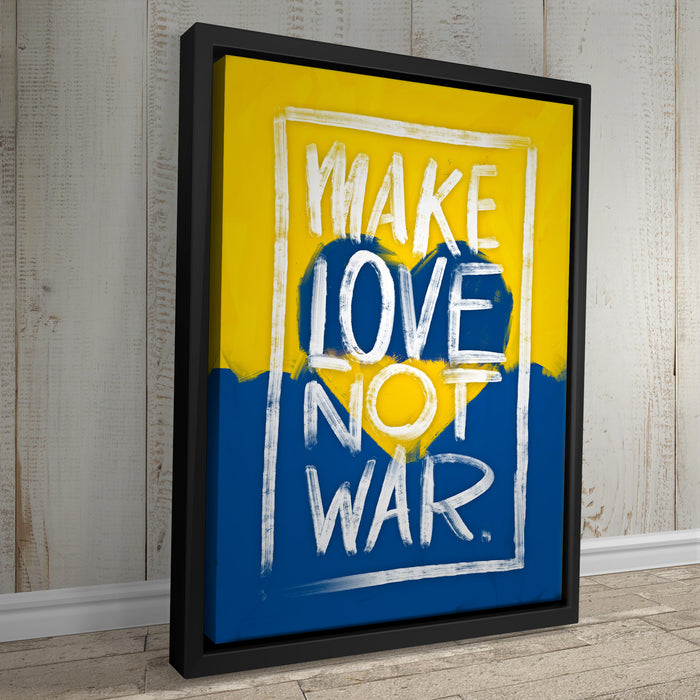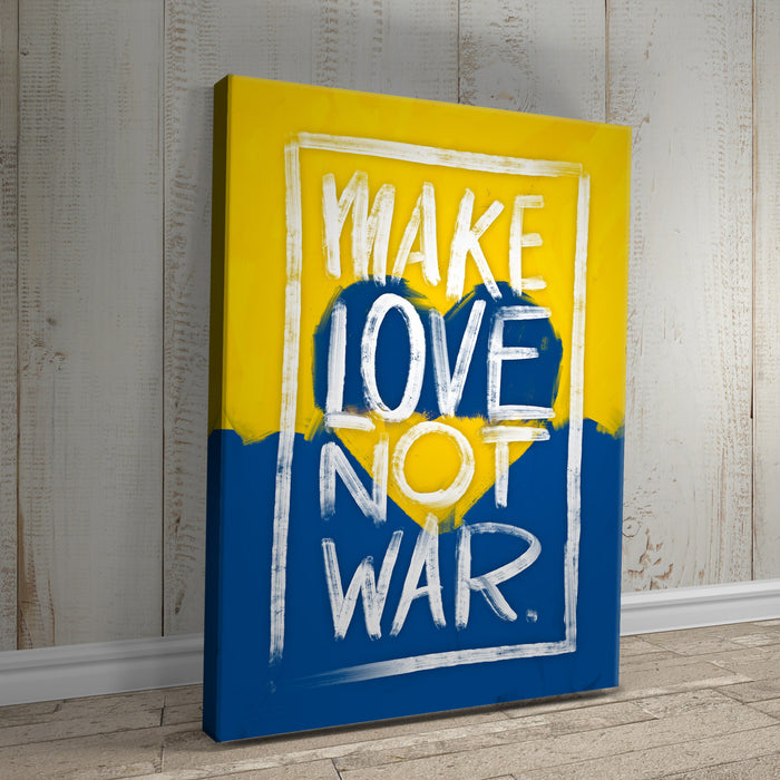 "Make Love Not War" is an inspiring and uplifting artwork that emphasizes peace, love, and unity. With vibrant colors like yellow, blue, and purple, this piece uses bold typography to convey a motivational message that resonates deeply, especially in times of conflict. The phrase "Make Love Not War" serves as a powerful call for compassion and harmony, appealing to those who champion peace.