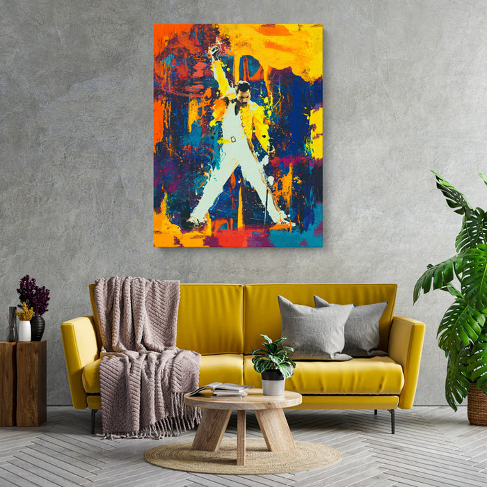Feel the pulsating energy as you gaze upon this masterpiece, where every brushstroke captures the essence of Freddy Mercury's captivating presence and vocal prowess.