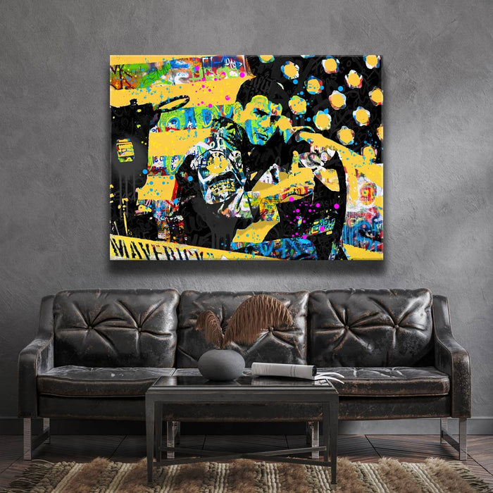 Bring the thrill of *Top Gun* to your space with "Mav Thumbs Up." The vivid color pop and graffiti-inspired design make it a standout piece for gamerooms, home theaters, or any area that needs a touch of movie nostalgia and artistic flair.
