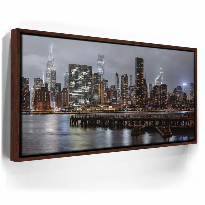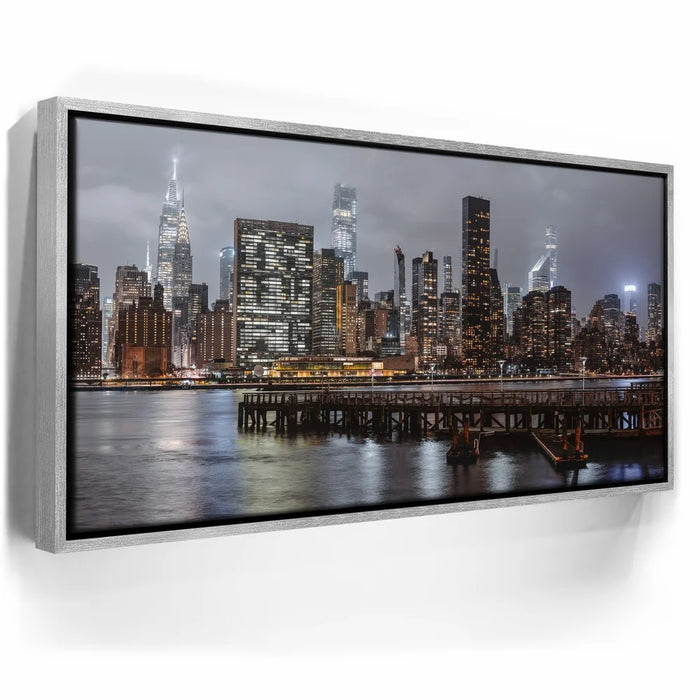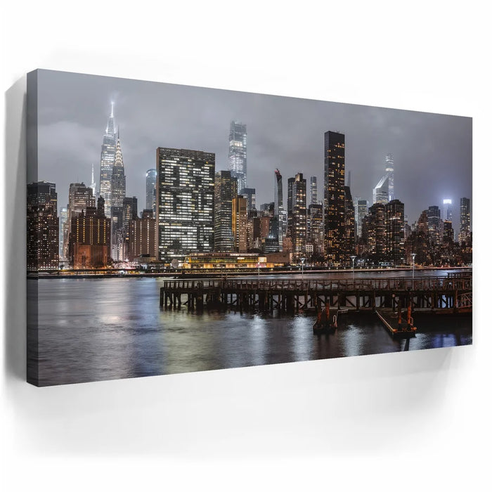 This panoramic cityscape highlights the beauty of Manhattan at night, perfect for those who love New York skyline art, urban photography, and elegant wall décor. A bold statement piece, it brings the essence of the East River and Midtown Manhattan into any home, office, or gallery.