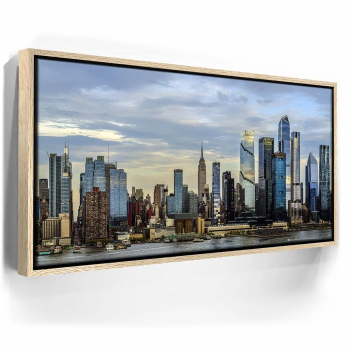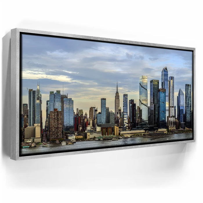 "Midtown Manhattan Skyline Panoramic View - 2 of 2" by Barbarossa presents a sweeping look at New York City’s most iconic skyline. Featuring the Empire State Building surrounded by the sleek, modern towers of Hudson Yards, this panoramic cityscape blends history and innovation against a dramatic sky.