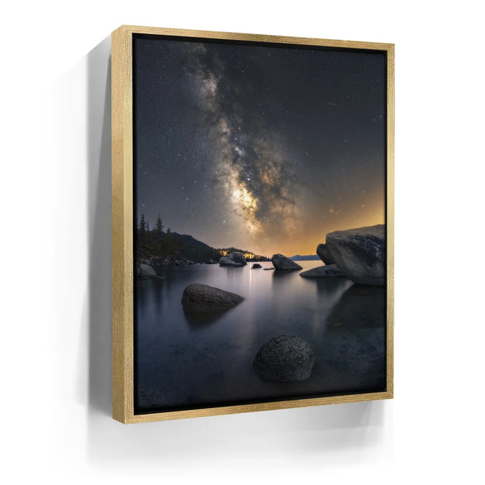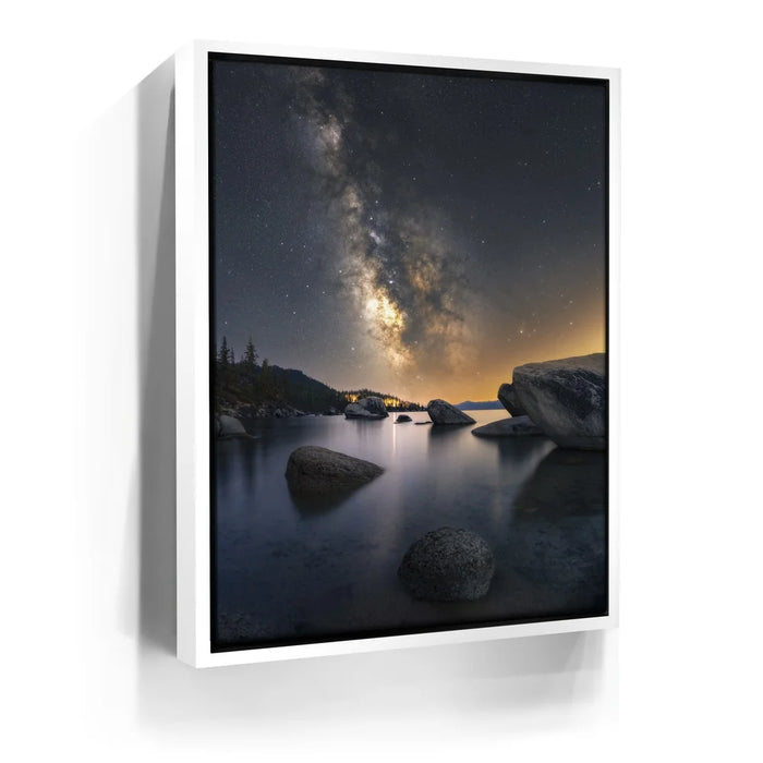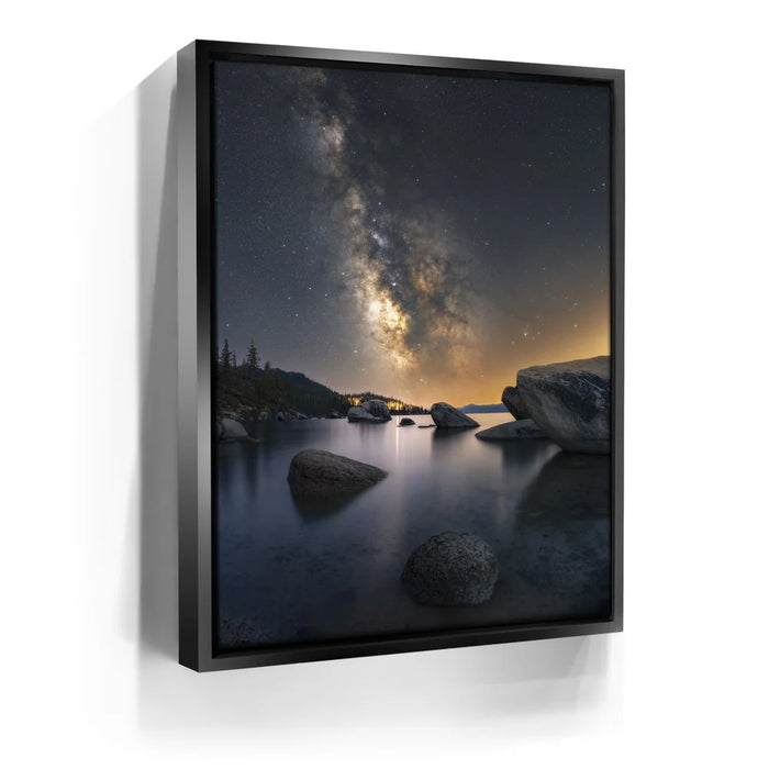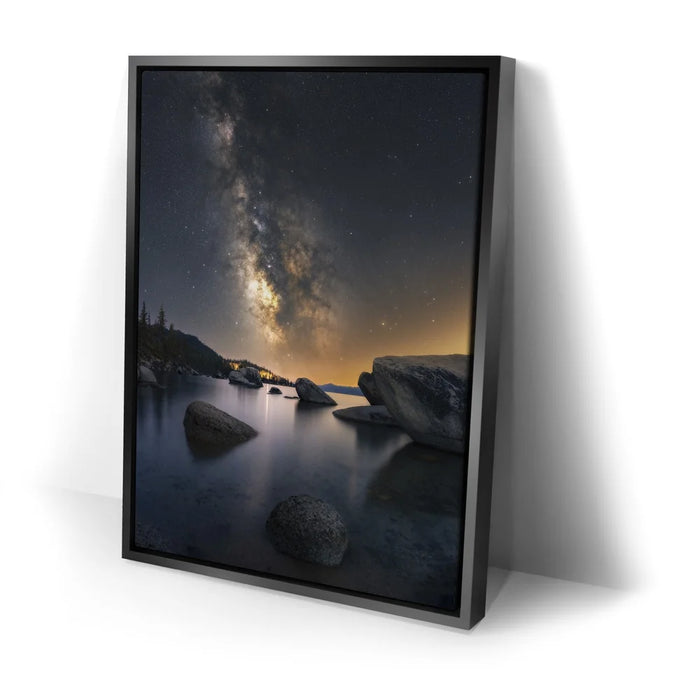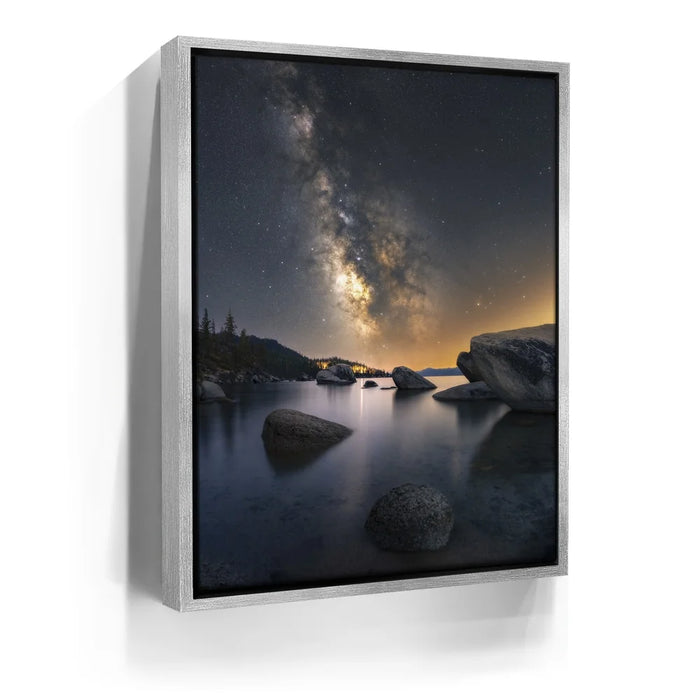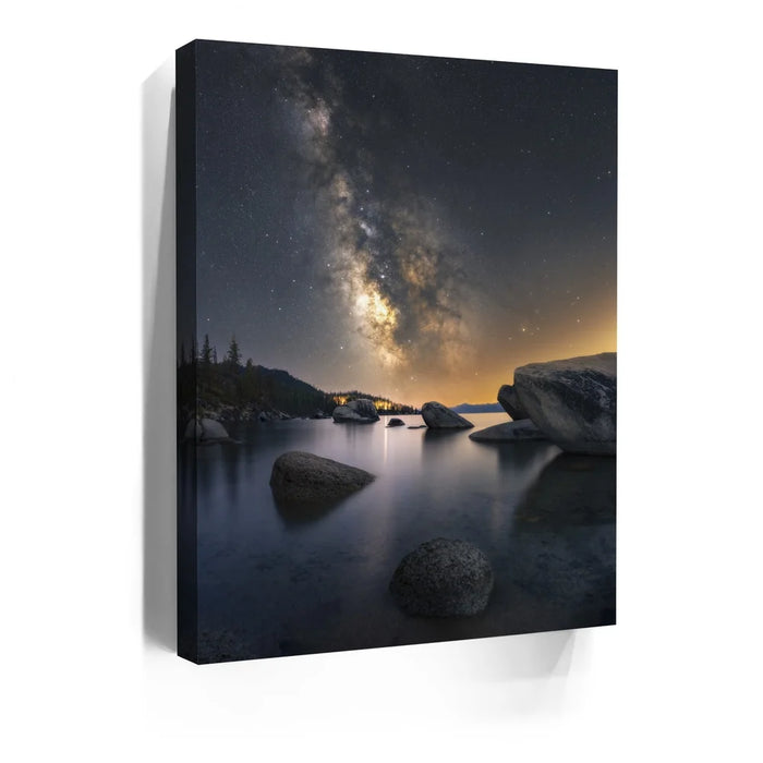 Perfect for astrophotography lovers, nature enthusiasts, and collectors of celestial art, this piece brings the wonder of the cosmos and the tranquility of Lake Tahoe into any home, office, or gallery.