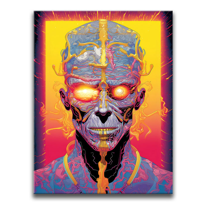 This artwork is perfect for those interested in futuristic themes and mind-bending visuals. "Mind Meld" offers a captivating exploration of the boundary between organic life and artificial intelligence, making it a standout addition to sci-fi or modern art collections.
