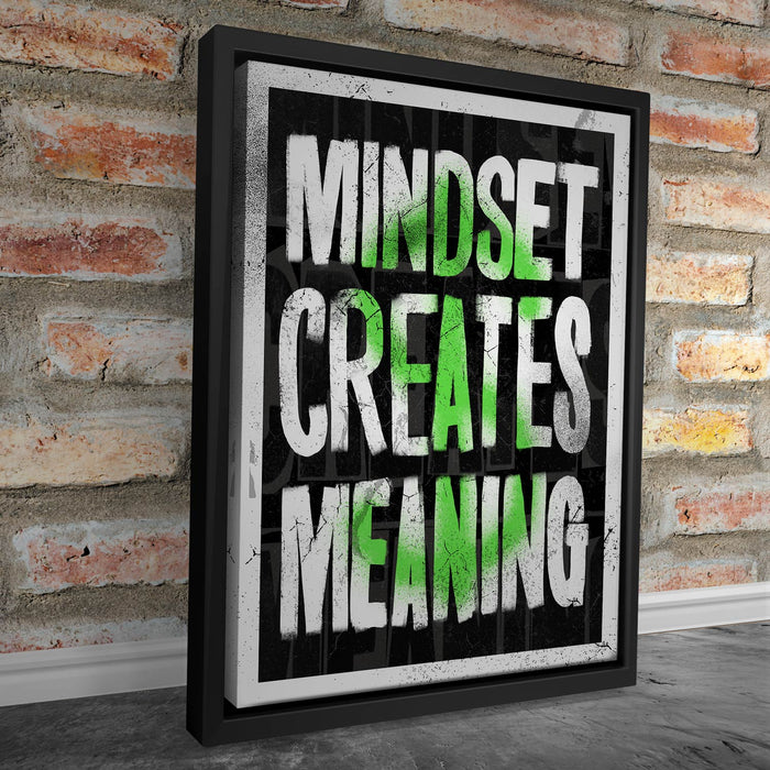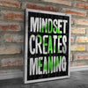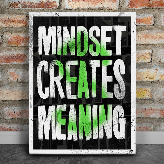 "Mindset Creates Meaning - Riches" is a motivational piece that emphasizes the power of a positive mindset in achieving success, wealth, and happiness. This artwork, with bold typography, serves as a reminder that the right perspective is essential for finding true meaning in both personal and financial pursuits. Ideal for offices, living rooms, or spaces dedicated to motivation and personal growth, this piece promotes a mindset focused on success and positivity.