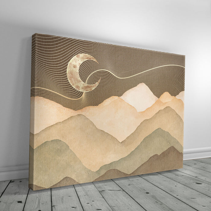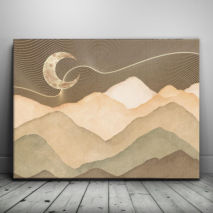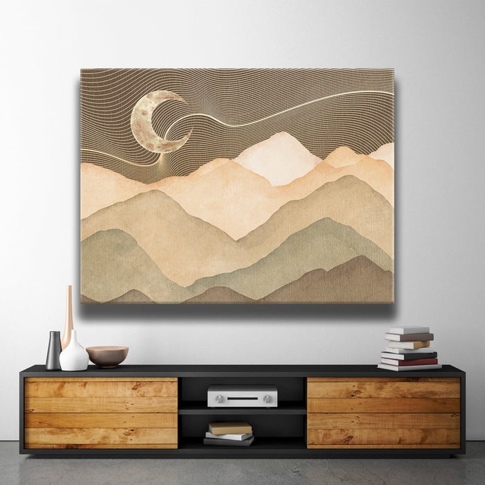 Enhance your space with "Moonlit Dreamscape - Boho," an abstract wall art masterpiece that combines the charm of a mountain sunset with the soothing vibe of boho style. Whether you're drawn to mountains, moonlit skies, or abstract art, this piece adds a sense of tranquility and natural beauty to your home decor.