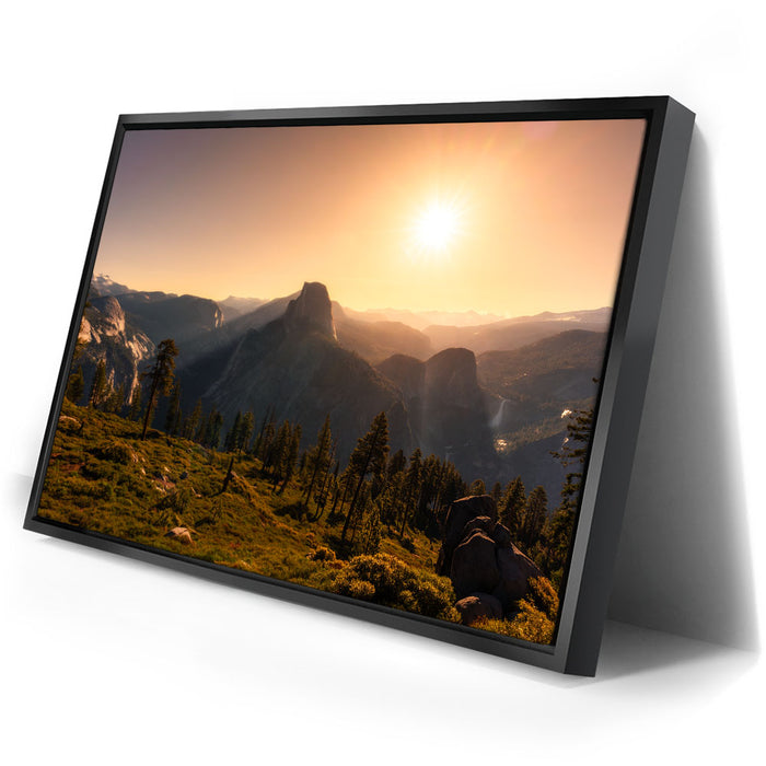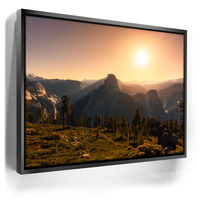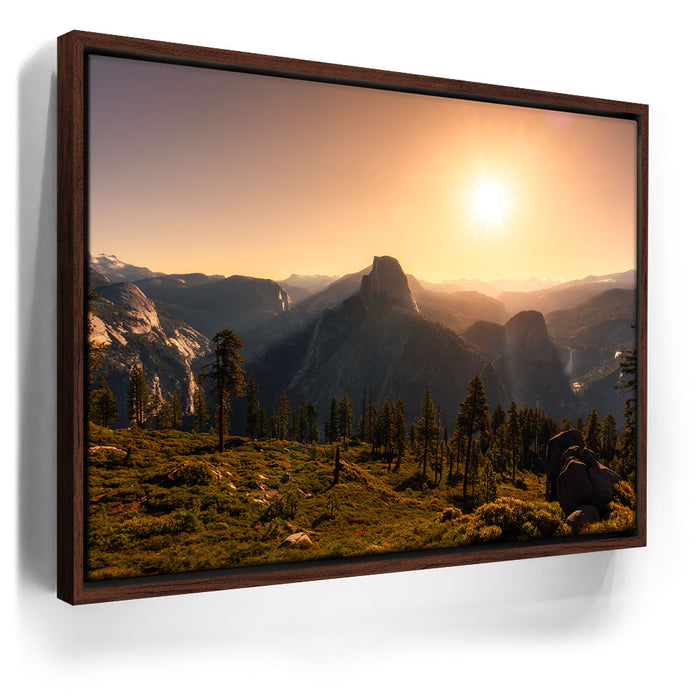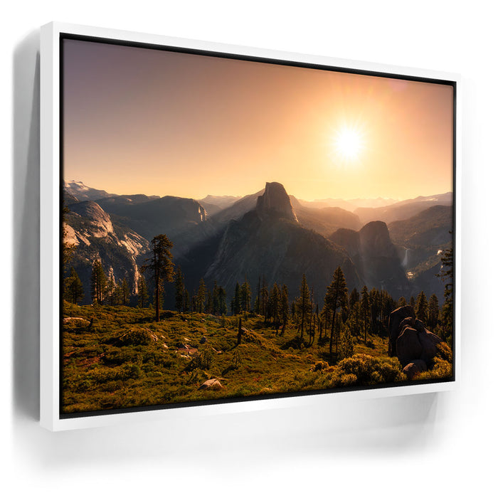 “Morning Vista - Yosemite, CA” by Daniel Heck captures the golden sunrise illuminating Half Dome and the sweeping valleys of Yosemite National Park. The warm morning light casts long shadows across the granite cliffs and pine forests, creating a breathtaking view of one of America’s most iconic landscapes.