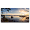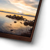 “Nature’s Elegance” by Daniel Heck captures the serene beauty of Lake Tahoe at sunset. Soft golden light reflects across the calm waters, highlighting smooth granite boulders and distant snow-capped mountains beneath a glowing sky. The composition blends tranquility with natural grandeur, showcasing the timeless charm of California’s most iconic alpine lake.