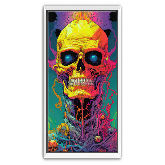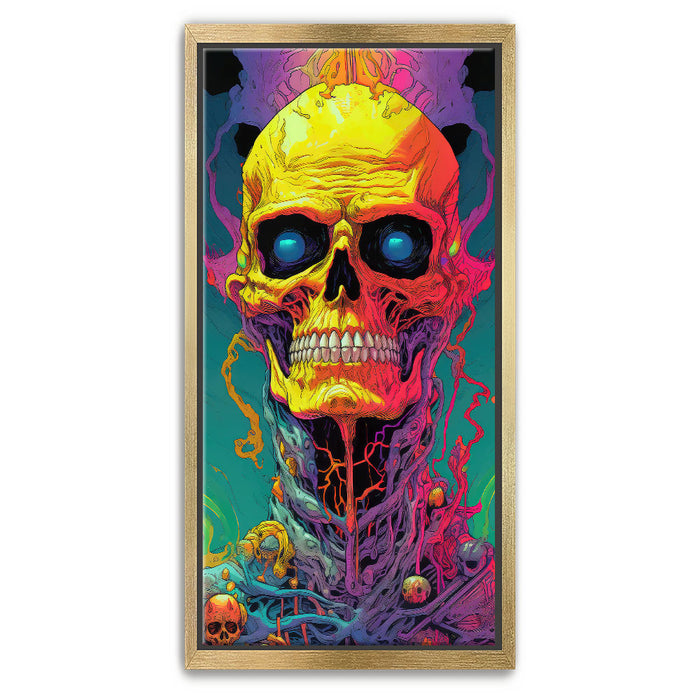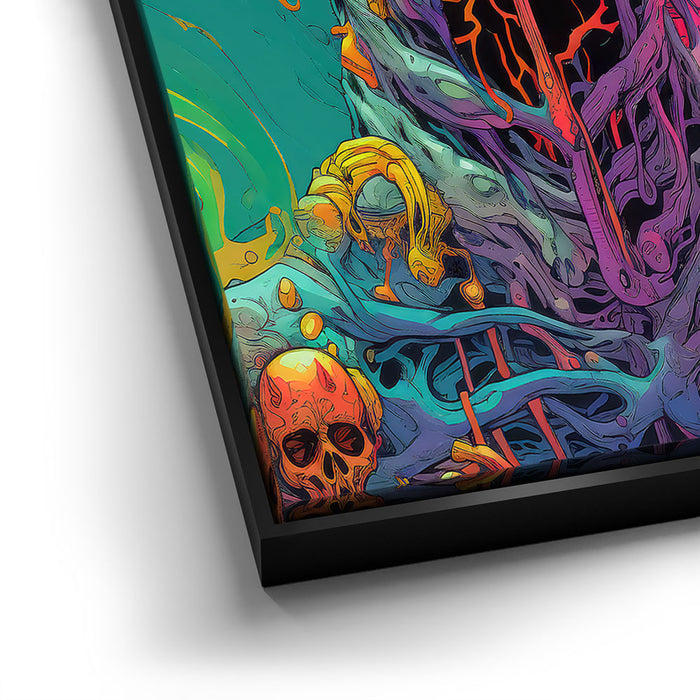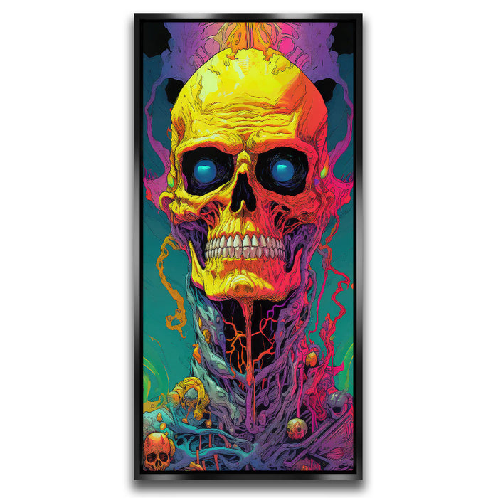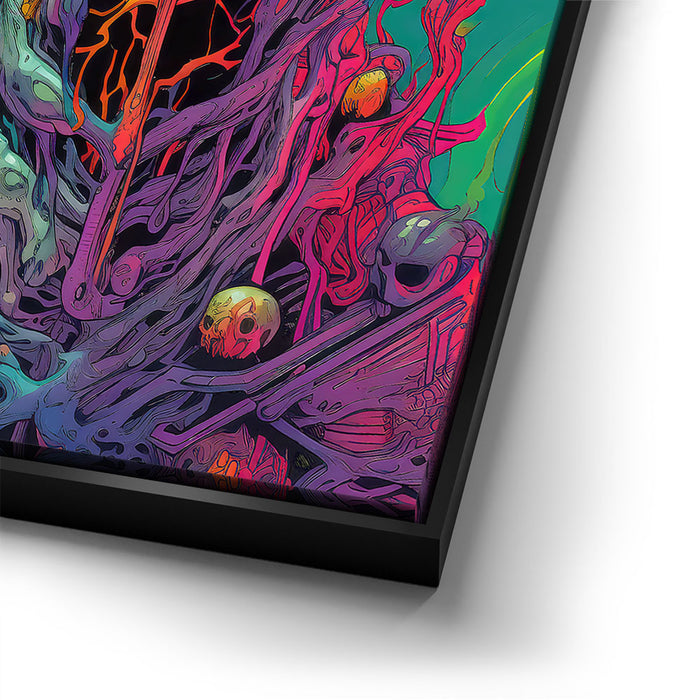 Perfect for fans of avant-garde and horror-inspired art, "Neon Bones" delivers a striking fusion of life, death, and neon aesthetics. Its dynamic use of color and intricate details make it a standout choice for anyone looking to add a bold statement piece to their collection.