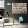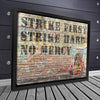 "No Mercy" by Arend Pryor is an electrifying piece of street art that pays homage to the world of wrestling, MMA, and iconic films like "The Karate Kid." This vibrant artwork captures the essence of martial arts with its references to classic quotes such as "Sweep the leg!" and "Strike hard, strike first," making it a must-have for fans of the UFC and nostalgic cinema.
