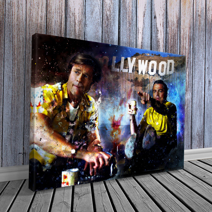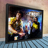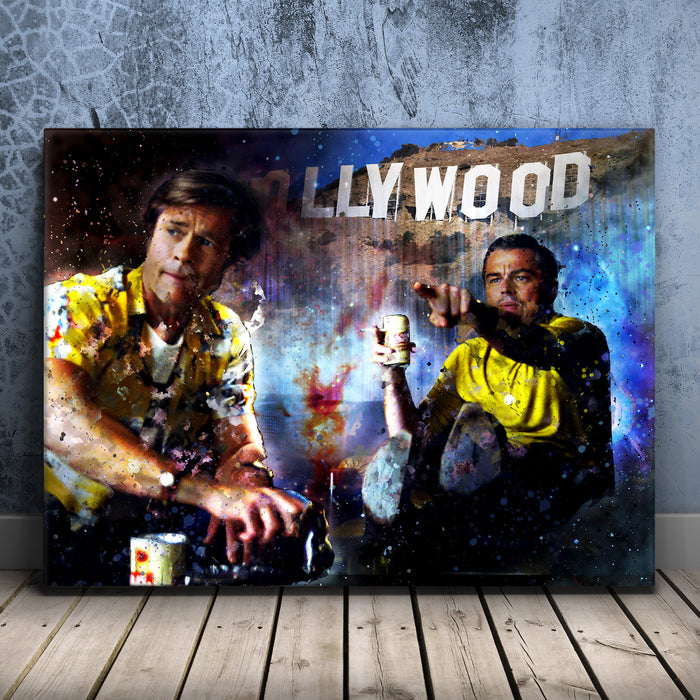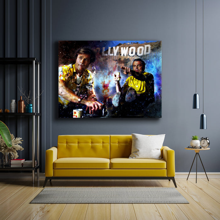 "Once Upon A Time" by artist Don Husband captures the essence of iconic Southern California, paying homage to Quentin Tarantino’s cinematic universe. Inspired by Tarantino's legendary films like *Once Upon a Time in Hollywood* and *Pulp Fiction*, this piece reflects the glitz and grit of Hollywood, featuring references to stars such as Leonardo DiCaprio, Brad Pitt, and Sharon Tate. It brings to life the energy of the Hollywood Hills, complete with nods to pop culture icons like Bruce Lee.