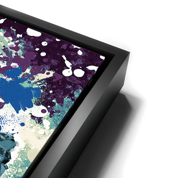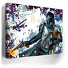 The vibrant, splattered paint background adds an abstract and contemporary twist, making this piece a standout addition to any collection. This high-quality canvas print brings a sense of adventure, camaraderie, and the enduring fight for justice to your home or office.
