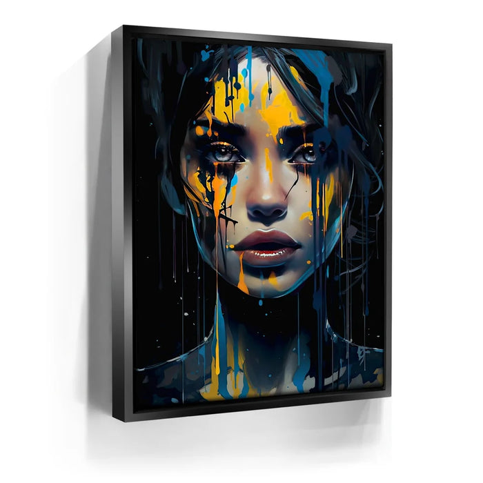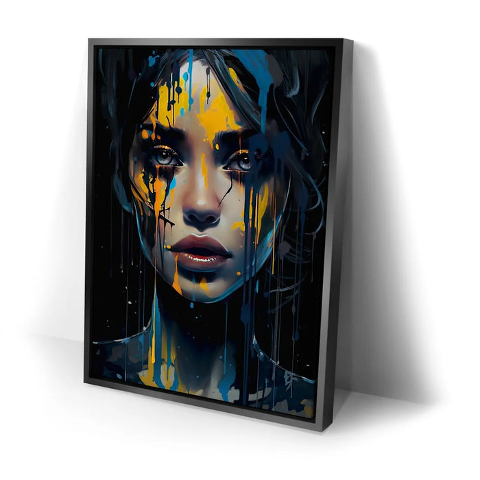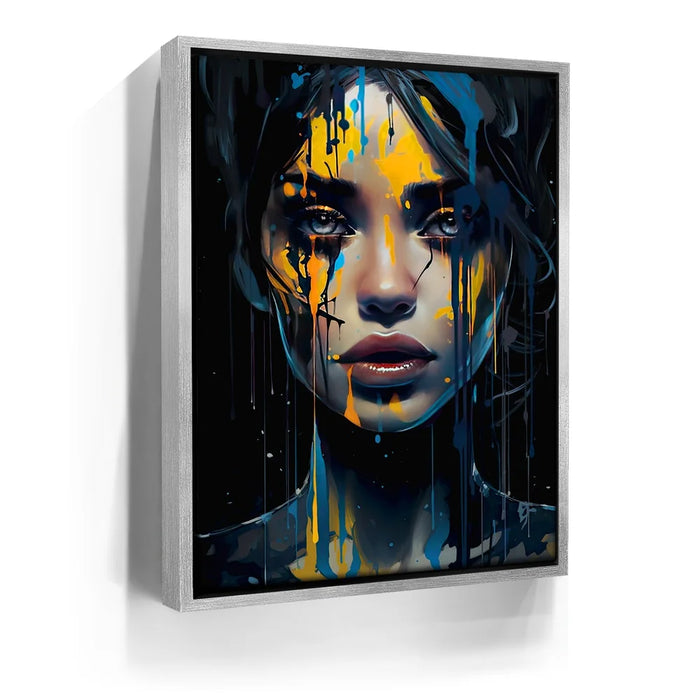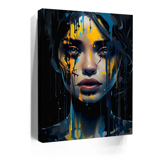 Pain Inside captures the quiet storm of emotion that lives beneath the surface. Vivid streaks of yellow and blue drip like tears across the subject’s face, fusing beauty with sorrow in a striking display of vulnerability. The interplay between light and shadow reveals both fragility and strength — a portrait of someone fighting to hold together what’s breaking within. This evocative piece speaks to the universal struggle of carrying pain the world cannot see.