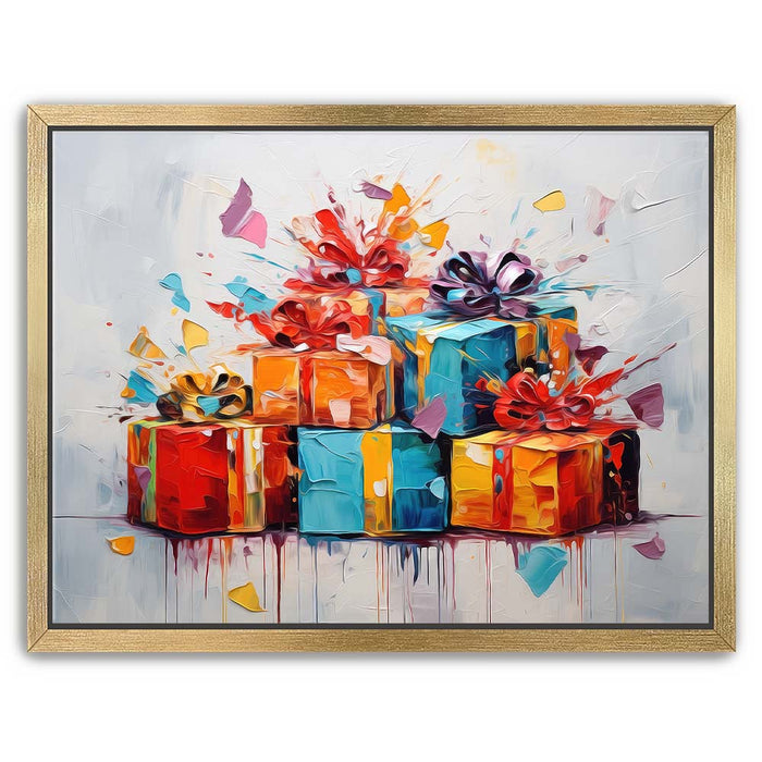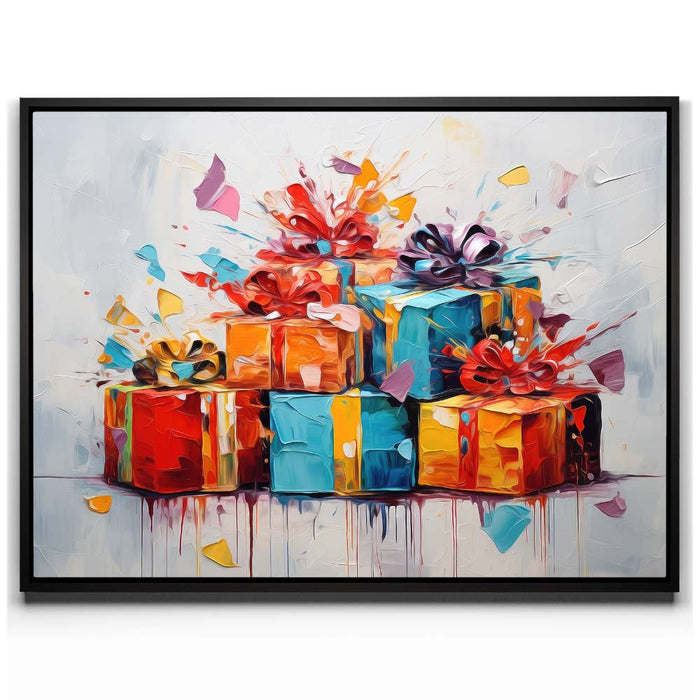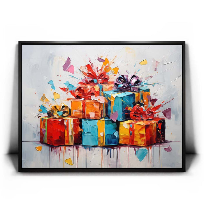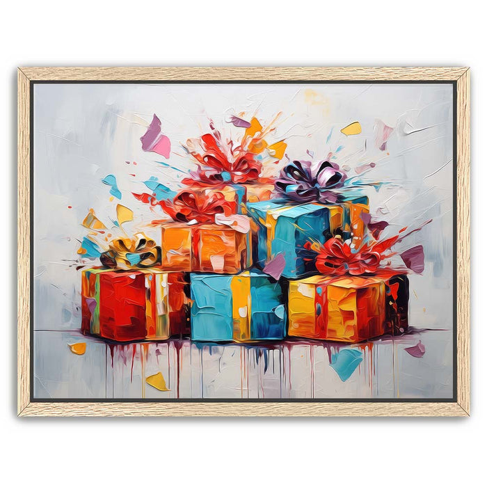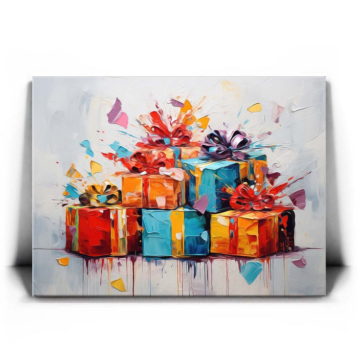 Whether you're looking to add a pop of color to your collection or searching for a special Christmas present, "Painting Presents" offers a beautiful, contemporary touch to any home or space. This piece by artist Chris Merrill is the perfect addition to your holiday decor, combining modern art with the essence of holiday giving.