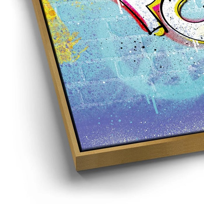 Peace – Colorful Graffiti wall art explodes with energy, style, and positivity. Featuring bold graffiti lettering and vibrant splashes of yellow, blue, and red, this piece blends urban street art with an uplifting message of harmony and love. The textured brick background adds an authentic city vibe, making it a perfect fusion of modern design and artistic expression.