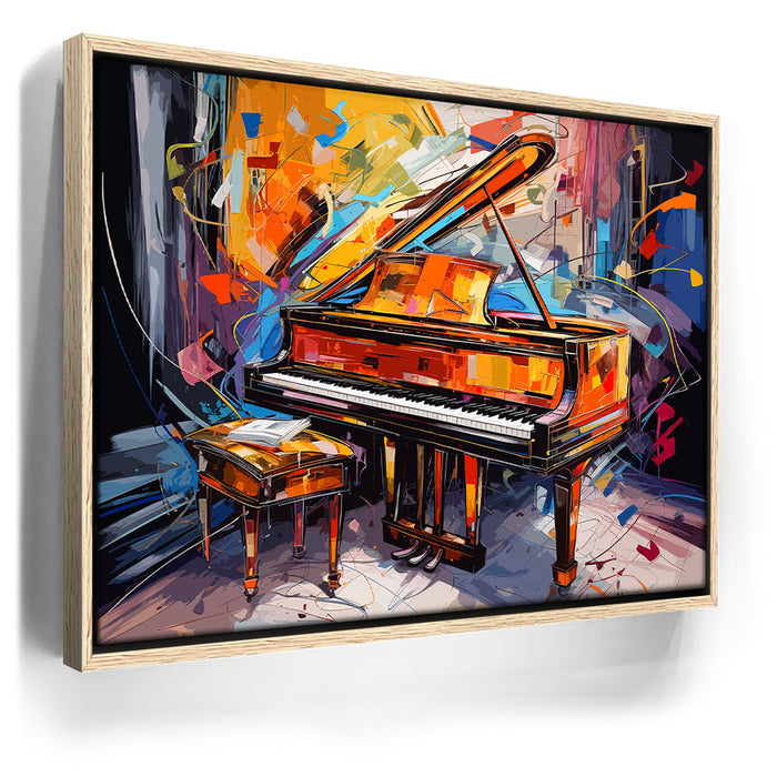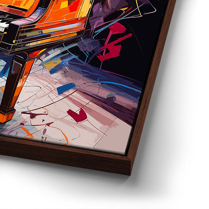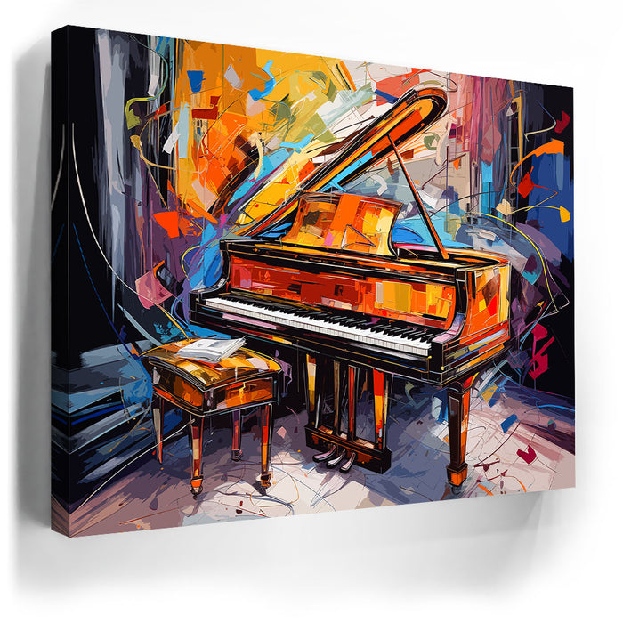 This vibrant and dynamic artwork, titled "Piano Carnival," captures the essence of music and art in a colorful abstract style. Featuring a grand piano surrounded by a lively explosion of colors, the piece blends elements of pop art, jazz, and graphic art. The swirling splatters of orange, yellow, blue, and brown create a rhythmic energy that evokes the atmosphere of a jazz club. This piece is perfect for music lovers and those who appreciate bold, abstract wall art. The work, created by artist Merrillo, makes an ideal addition to any space that values both music and artistic expression.