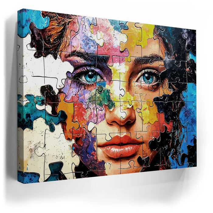 Pieces of Me captures the beautiful complexity of identity — a vivid mosaic of color and emotion forming a portrait both whole and incomplete. Each puzzle piece reflects a different fragment of self: joy, struggle, memory, and growth. The piercing blue eyes draw the viewer in, suggesting a story still being assembled. This artwork is a celebration of individuality and imperfection — a reminder that even in our unfinished state, we are masterpieces in motion.