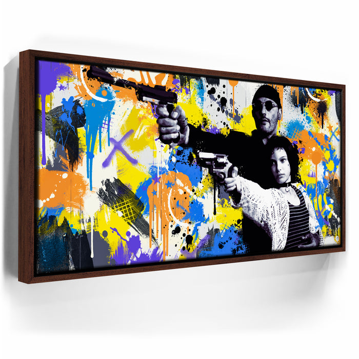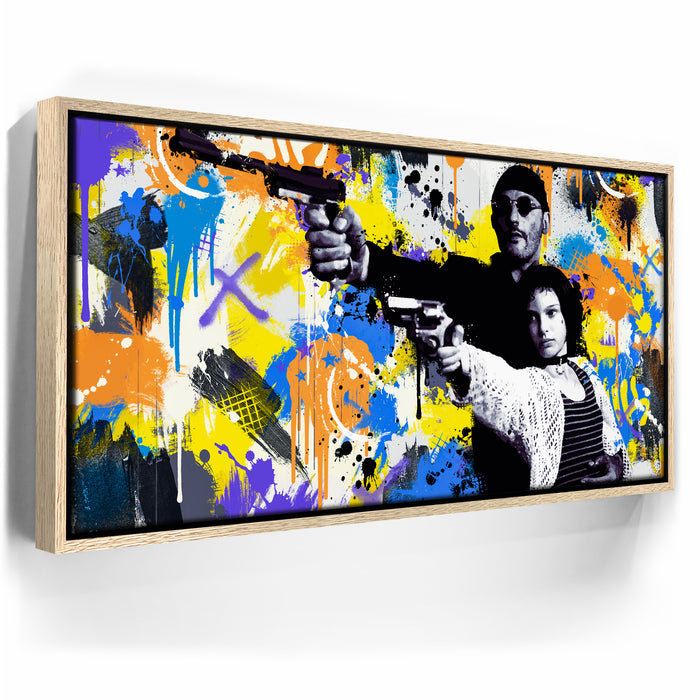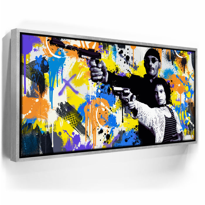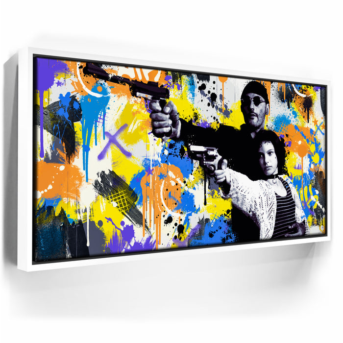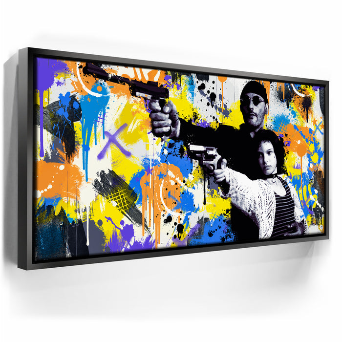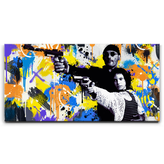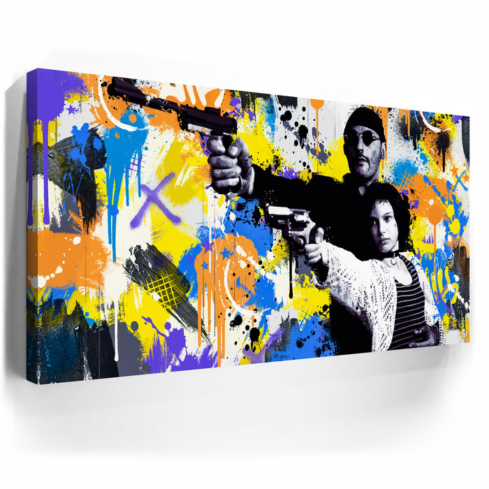 “Professional Guidance 1” by Stella Ygris explodes with color and defiance, reimagining a legendary cinematic duo through a graffiti-inspired lens. Layered with bold paint splatters and chaotic street-art textures, this piece fuses pop culture and rebellion into one unmissable statement.